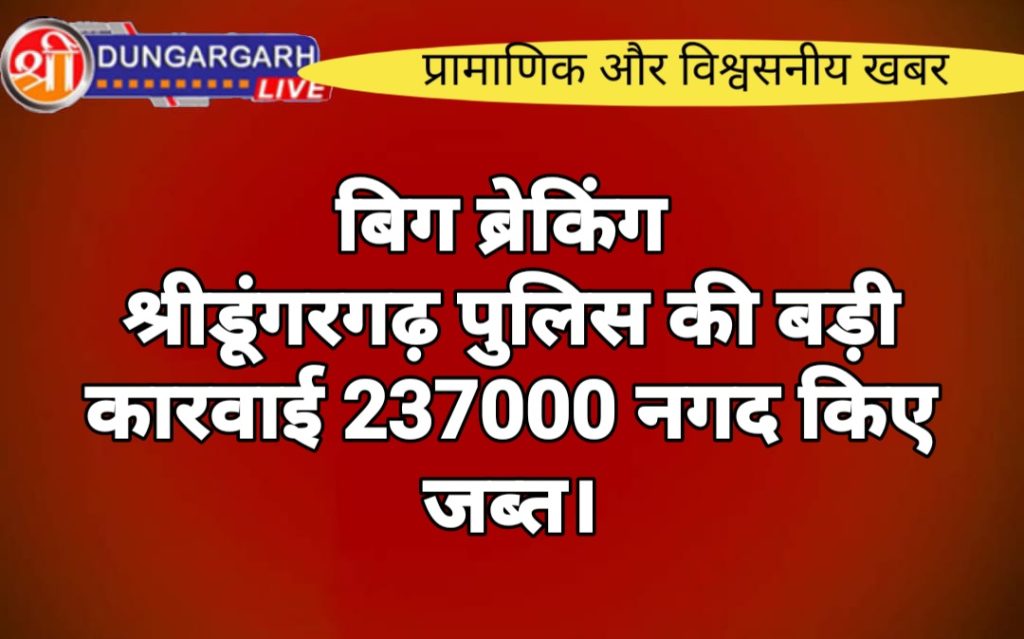 बिग ब्रेकिंग श्रीडूंगरगढ़ पुलिस की बड़ी कारवाई 237000 नगद किए जब्त।