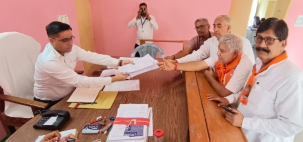 भाजपा प्रत्याशी ताराचन्द सारस्वत ने अपने समर्थकों ले साथ गुरुवार को नामांकन दाखिल किया। इस दौरान कानून मंत्री अर्जुनराम मेघवाल, भाजपा के दिग्गज नेता छैलू सिंह शेखावत, भाजपा देहात जिलाध्यक्ष रामगोपाल सुथार, दिल्ली के पूर्व विधायक राजेश गहलोत, विनोदगिरी गुसाई, नारायण मोट, सरपंच जुगराज संचेती, सरपंच ओमप्रकाश शर्मा, सरपंच जसवीर सारण, भाजपा महिला देहात जिलाध्यक्ष कुसुम शर्मा, शहर अध्यक्ष रेणु भादानी, शहर मंडल अध्यक्ष महावीर प्रसाद अड़ावलिया, शोभाचन्द आसोपा सहित कई नेता मौजूद रहे। नामांकन दाखिल करने से पूर्व सारस्वत ने शक्ति प्रर्दशन करते हुए रोड़ शो किया। जिसमें शहर के अलावा ग्रामीण इलाकों से हजारों की तादात में लोग पहुंचे। यहां श्यामा प्रसाद मुखर्जी स्टेडियम के आगे हुई चुनावी सभा में मंच पर पार्टी संगठित दिखाई दी। इस दौरान मंच पर करीब एक सौ से भी ज्यादा भाजपा नेताओं की मौजूदगी रही। सभी ने चुनावों में सारस्वत का समर्थन किया।