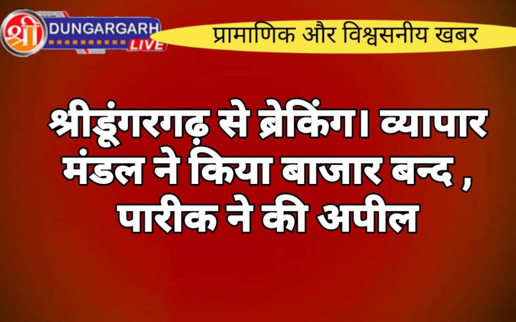 राष्ट्रीय राजपूत करणी सेना के अध्यक्ष सुखदेव सिंह गोगामेड़ी की मंगलवार को अपराधियों द्वारा उनके घर में गोली मारकर हत्या कर देने के बाद मामला तूल पकड़ने लगा है। सर्वसमाज द्वारा इसका लगातार रोष चल रहा है। प्रदेशभर में बन्द का आह्वान किया गया।। विरोध स्वरूप श्रीडूंगरगढ़ में भी बाजार बन्द का आह्वान किया गया। व्यापार मण्डल के अध्यक्ष श्यामसुन्दर पारीक ने कहा है घटना के विरोध स्वरूप सर्वसमाज में रोष है और बन्द के आह्वान के तहत निर्णय लिया गया है कि बाजार पूर्णतया बन्द रहेंगे। सभी से अपील है कि शांति पूर्वक बन्द का सहयोग करें।
