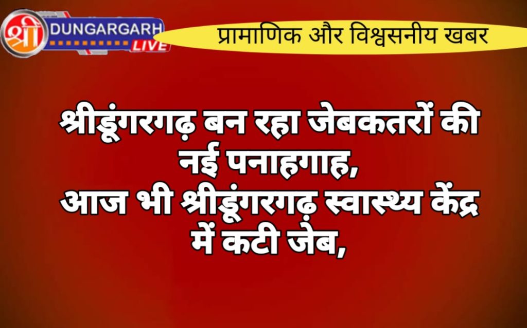 आज भी श्रीडूंगरगढ़ उपजिला स्वास्थ्य केंद्र में एक व्यक्ति की महिला जेबकतरे द्वारा जेब तराशी की गई। कस्बे के कालूबास के व्यक्ति से बीस हजार रुपये निकाल लिए गए।
