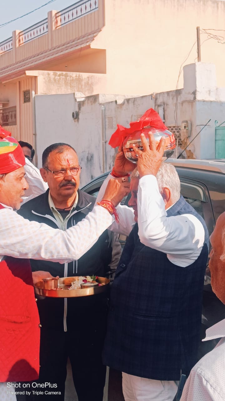 श्रीडूंगरगढ़ अयोध्या से पीले चावल स्वरूप निमंत्रण आज आड़सर बाद श्रीराम मंदिर पहुंचा । वैदिक मंत्रों से कलश पूजन विधायक ताराचंद सारस्वत के हाथो से संपन हुई । विधायक ताराचंद सारस्वत ने मंगल कलश को सिर पर रख कर कलश पूजा संपन्न करवाई। सारस्वत ने राम भक्तों से अयोध्या जाने का कार्यक्रम बनाने की बात कहते हुए कहा कि जो लोग अयोध्या नहीं जा पाएं वे 22 जनवरी 2024 को अपने घरों में दीपक जलाकर मीठा बनाएं और रामलला की मूर्ति स्थापना का उत्सव जरूर मनाए। पंडित देवकिशन छंगाणी, भवानी देराजसरी व बनवारी आसोपा ने वैदिक मंत्रों के साथ ‘राम आएंगे’ भजन गाकर वातावरण राममय बना दिया। पूजा श्रीराम मंदिर में सुबह 10बजे सम्पन हुई विश्व हिंदू परिषद के जगदीश स्वामी,भवरलाल दुगड़, श्याम सुन्दर जोशी,संतोष बोहरा,वासुदेव सारस्वत,अशोक वेद,और श्रीडूंगरगढ़ के गणमान्य नागरिक हरी प्रसाद तापड़िया,सुरेश भादानी, भवानी तावनिया आदि