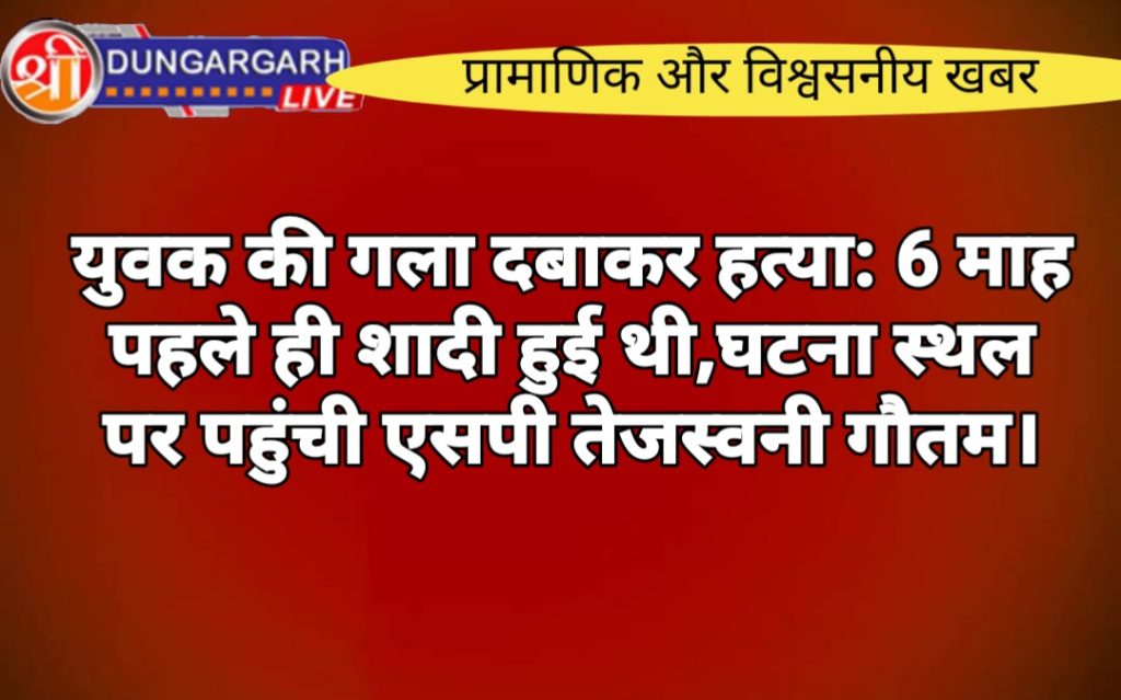 देराजसर गांव की ढाणी में युवक की शुक्रवार रात हत्या कर दी गई। 6 महीने पहले ही युवक की शादी हुई थी और पत्नी इन दिनों पीहर में है। उसका गला दबाकर मारा गया है। घटना की जानकारी मिलने पर SP तेजस्वनी गौतम खुद मौके पर पहुंची और डॉग स्क्वायड के साथ एफएसएल टीम ने भी छानबीन की है।मृतक महेन्द्र है, जिसका विवाह करीब छह माह पहले हुआ था। महेंद्र अपनी ढाणी में बाहर बने कमरे में अकेला सो रहा था। सर्द रातों के कारण अन्य परिजन भी ढाणी के अंदर कमरे बंद करके सो रहे थे। सुबह महेंद्र को उठाने गए तो पता चला कि वो मृत अवस्था में है। पुलिस को मौके पर बुलाया गया। उसका गला दबाकर मारा गया है।