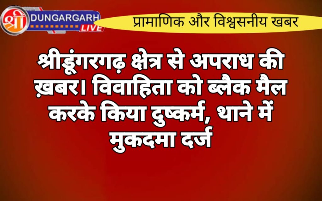 विवाहिता को अकेला देखकर घर में घुसा युवक, दुष्कर्म की वारदात को दिया अंजाम आरोपी के खिलाफ श्रीडूंगरगढ़ थाने में मुकदमा दर्ज।