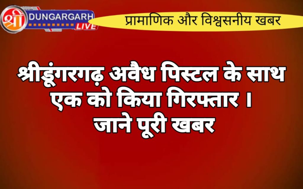 श्रीडूंगरगढ़ पुलिस गस्त के दौरान एक को अवैध पिस्टल के साथ गिरफ्तार किया है। हेडकांस्टेबल आवड़दान सिंह की टीम ने गस्त के दौरान टेक्सी स्टेंड पहुंची तभी पुलिस को सूचना मिली की गोपाल राम जाखड़ जो की आदतन बदमाश है और झवर बस स्टेंड पर खड़ा है । पुलिस टीम तुरंत मौके पर पहुंची और गोपाल राम जाखड़ पुत्र खिराजराम जाखड़ निवासी तेजरासर इनके पास पुलिस को तलाशी के दौरान पिस्टल मिली जो की बिना लाइसेंस की थी और अवेध भी थी पुलिस ने पिस्टल सहित गोपालराम को गिरफ्तार कर आगे की जांच एसआई रविंद्र सिंह को शॉप दी है।
