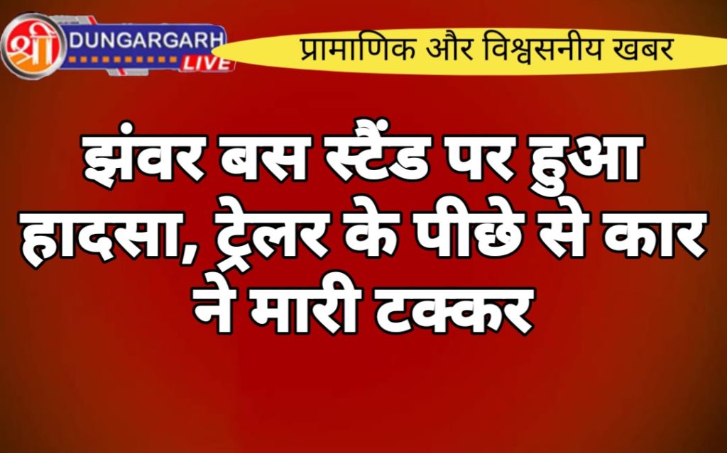 श्रीडूंगरगढ़ के झंवर स्टैंड पर हुआ अभी अभी हादसा। प्रत्यक्षदर्शियों के अनुसार राष्ट्रीय राजमार्ग पर झंवर बस स्टैंड के पास सर्विस लाइन पर एक ट्रेलर के पीछे चल रही कार ने टक्कर मार दी। कार ट्रेलर के नीचे कुछ दूरी तक घसीटी गयी। कार में सवार दो लोगो को आपणो गांव सेवा समिति की एम्बुलेंस से श्रीडूंगरगढ़ उपजिला अस्पताल पहुंचाया गया। कार में सवार युवक रामकिशन गोदारा पुत्र हनुमानाराम गोदारा उम्र 40 वर्ष घायल हो गया। जिसका प्राथमिक उपचार चल रहा है।
