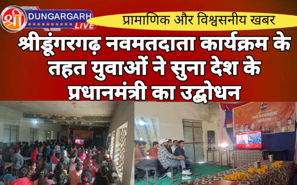 श्री डूंगरगढ़ आज राष्ट्र मतदान दिवस के अवसर पर श्रीडूंगरगढ़ में युवा शक्ति ने भाजपा युवा मोर्चा के जिलाध्यक्ष जसराज सिंवर और भाजपा जिला महामंत्री श्याम पंचारिया के साथ सुना प्रधानमंत्री नरेन्द्र मोदी का उद्बोधन । इस अवसर पर प्रधानमंत्री मोदी ने युवाओं को देश का कर्ण धार बताते हुए नमो एप्प पर अपने सुझाव प्रेषित करने का आग्रह किया ताकि भविष्य में देश की युवा सोच के साथ विकसित भारत संकल्प पुरा किया जा सके। श्याम पंचारिया ने आज नवमतदाता दिवस के अवसर पर युवाओं को मतदाता सुची में ज्यादा से ज्यादा अपने नाम जुडवाने के लिए प्रेरित किया । मंडल अध्यक्ष महावीर प्रजापत ने युवाओं को केन्द्र की योजनाओं के बारें में बताया । महामंत्री सुरेन्द्र चुरा ने युवाओं को विकसित भारत के संकल्प कार्यों के बारें में विस्तार से बताया । इस दौरान महामंत्री महेश राजोतिया, भाजयुमो जिला मंत्री भवानी प्रकाश तावानियाँ,भाजयुमो शहर अध्यक्ष मनोज गुर्जर, भाजयुमो देहात अध्यक्ष उत्तमनाथ सिद्ध,विकास सुथार,श्रवण मेघवाल,नरपत सिंह राजोपुरोहित,विकास पारीक,विकास बिश्नोई सहित नवमतदाता एंव युवा शक्ति में इस कार्यक्रम में प्रमुखता से भाग लिया ।