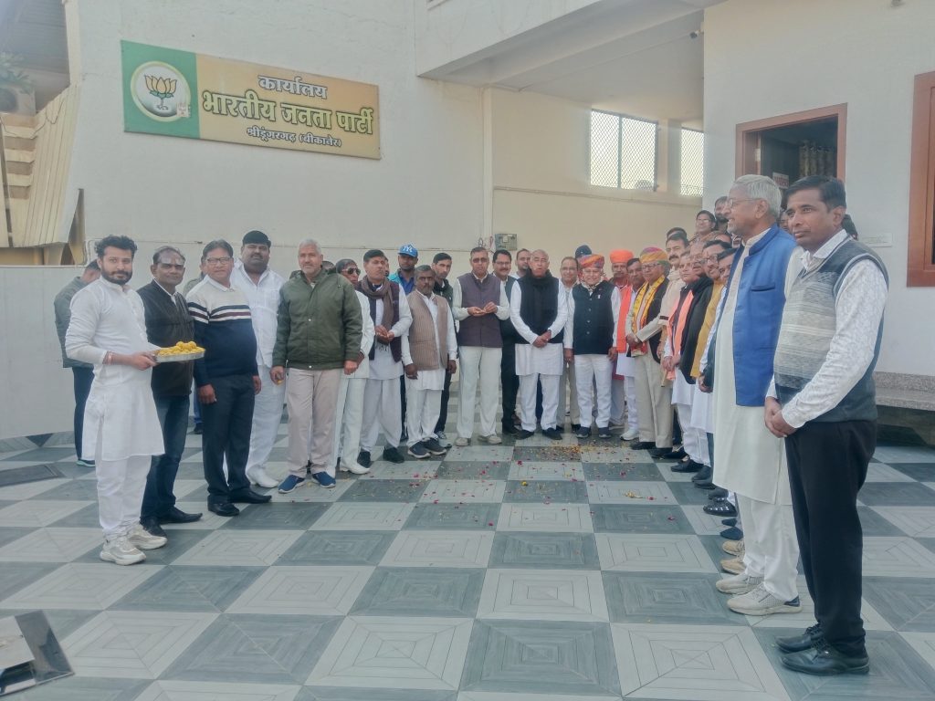 भाजपा कार्यालय श्रीडूंगरगढ़ में ध्वजारोहण विधायक ताराचंद सारस्वत और शहर मंडल अध्यक्ष महावीर प्रजापत ने किया ।इस दौरान मौजूद रहे चेयरमैन मानमल शर्मा,पूर्व जिलाध्यक्ष रामगोपाल सुथार,उपाध्यक्ष बंशी सुथार,मांगीलाल राठी, अल्पसंख्यक मोर्चा जिलाध्यक्ष इमरान राईन, सुरेन्द्र चूरा,हेमनाथ जाखड़,पार्षद विनोद गिरी गुंसाई,जगदीश गुर्जर,संतोष बोहरा,रजत आसोपा,चांद रतन सेठिया,सत्यनारायण नाई,लोकेश गौड़,विक्रम सिंह शेखावत,पवन उपाध्याय,लालचन्द झंवर, भवानी प्रकाश तावणीयां,बाबूलाल सोनी,राजू बाहेती,शिव बिहान,समुन्दर सिंह,फतेह सिंह जांगिड़,नरेश राजपुरोहित, मुलचंद इंदोरिया,रोशन छींपा, प्रिशु स्वामी,हनुमान नाई, मूलनाथ सिद्ध,रमेश सिद्ध,अशोक माली,काशीराम तावनियां,भागीरथ सुथार, गोपी मेघवाल आदि कार्यकर्ता एवं नागरिकगण मौजूद रहे
