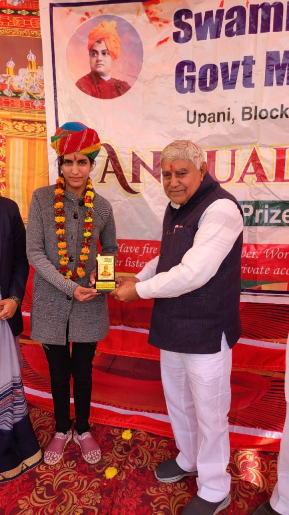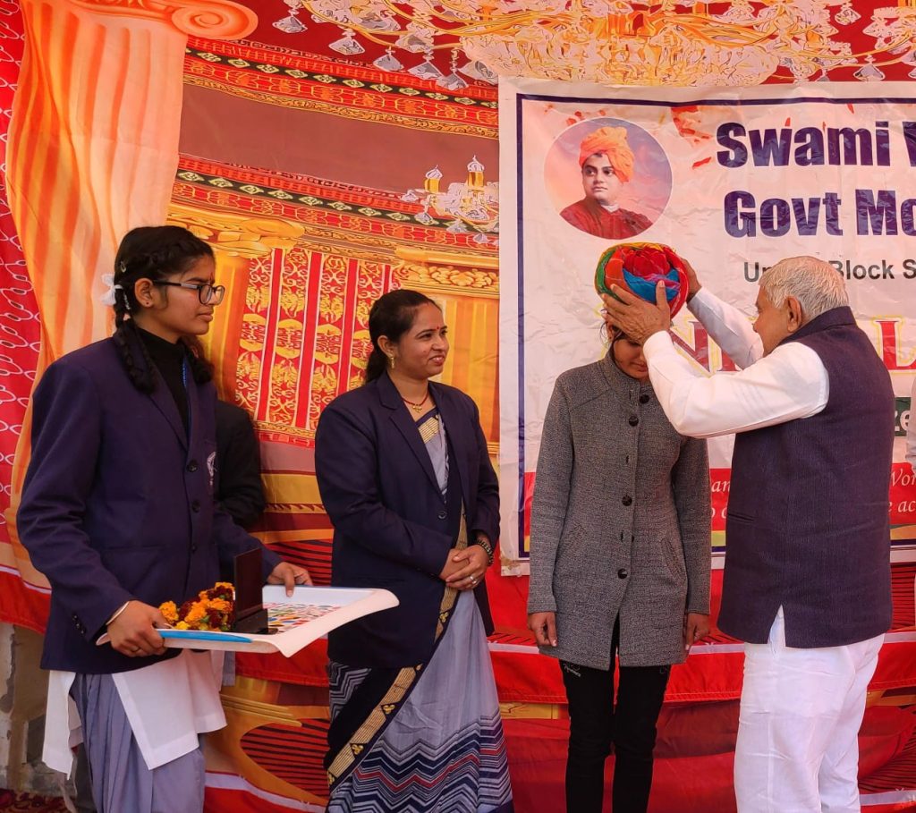 आज स्वामी विवेकानंद राजकीय मॉडल विद्यालय ऊपनी श्रीडुंगरगढ़ में वार्षिक महोत्सव का आयोजन किया। कार्यक्रम में मुख्यातिथि के श्रीडूंगरगढ़ विधायक ताराचंद सारस्वत ने रहे। कार्यक्रम में उत्कर्ष कार्य करने वाले छात्र छात्राओं को सम्मानित किया गया। इस दौरान विधायक ताराचंद सारस्वत ने स्वामी विवेकानंद के जीवन पर प्रकाश डाला। कार्यक्रम में विधायक ताराचंद सारस्वत ने माननीय महामहिम राष्ट्रपति महोदया से पुरुस्कार के लिए नामित होने एवं स्काउट में उत्कृष्ट प्रदर्शन करने पर श्रीडूंगरगढ विधानसभा की बेटी उपदेश सिद्ध पुत्री श्री ज्ञाननाथ जी सिद्ध ऊपनी को पुरस्कृत किया। इस दौरान प्रधानाचार्य योगेश , भाजपा नेता किशनाराम गोदारा सहित ग्रामवासी उपस्थित रहे