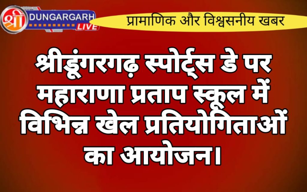 स्पोर्ट्स डे पर विभिन्न खेल प्रतियोगिताओं का आयोजन।। कस्बे के प्रथम अंग्रेजी माध्यम विद्यालय महाराणा प्रताप पब्लिक सीनियर सेकेंडरी स्कूल श्री डूंगरगढ़ में स्पोर्ट्स डे पर दो दिवसीय आयोजन में प्रथम दिन कक्षा नर्सरी से बारहवीं तक के विद्यार्थियों ने बड़े उत्साह से विभिन्न खेल प्रतियोगिताएं में हिस्सा लिया। कक्षा तीन से बारहवीं तक के बच्चो ने क्रिकेट ,बैडमिंटन एकल,और डबल में हिस्सा लिया। कक्षा नर्सरी से सैकंड तक के विद्यार्थियों ने म्यूजिकल चेयर और अन्य आयोजनों में हिस्सा लिया। शाला प्रबंधक विजयराज सेवग और प्रधानाचार्य भगत सिंह धनकड़ ने बताया कि कल इनके फाइनल मैच खेले जाएंगे। खेल प्रभारी गोपालराम शर्मा ने बताया कि प्रत्येक विद्यार्थी ने अपने पूरे कौशल के साथ और दम खम से बेहतर प्रदर्शन किया।विद्यालय के सभी साथियों का सहयोग सराहनीय रहा।