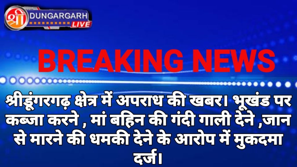 श्रीडूंगरगढ़ थाने में मुकदमा दर्ज करवाते हुए कमल किशोर पुत्र रामलाल जाति जाट उम्र 42 साल निवासी आड़सर बास ने बताया कि मेरा एक कब्जे सुदा भूखंड श्याम गौशाला के पास 20साल से है । जिस पर मैंने कांटेदार बाड़ , झोपड़ी और तार पट्टी करके रखी है। आरोपी धर्माराम जाति जाट निवासी उपनी ने और तीन चार अन्य व्यक्ति आए और मेरे भूखंड में प्रवेश कर ईंट पत्थर डाले मेरी तार पट्टी टुकड़े तोड़ कर अपने साथ ले गया। इसकी रिपोर्ट भी मैंने थाने में दर्ज कराई थी लेकिन कोई ठोस कार्रवाई नहीं हुई आज फिर धर्माराम जाट ने मेरे भूखंड में जाकर तार पट्टी तोड़ी और झोपड़ी भी उखाड़ कर ले गया। प्राथी ने आरोपी को मोबाइल फोन पर ओल्मा में दिया तब आरोपी ने मुझे प्रार्थी को मां बहन की गंदी-गंदी गाली दी जान से मारने की धमकी दी। श्रीडूंगरगढ़ थाने में आरोपी के खिलाफ मुकदमा दर्ज कर लिया है और आगे की जांच एसआई पूरणमल को सौंप दी है