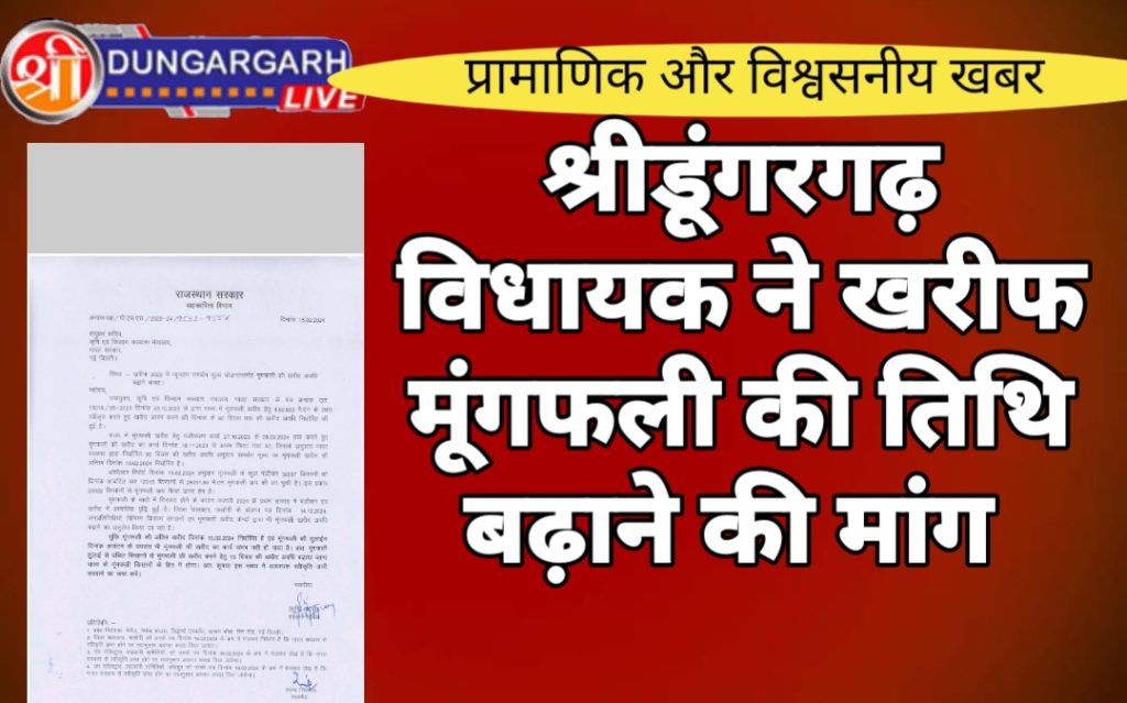 श्रीडूंगरगढ़ विधायक ताराचंद सारस्वत ने राज्य नैफेड के अधिकारियों से फोन पर वार्ताकर खरीफ 2023 में न्यूनतम में न्यूनतम समर्थन मूल्य योजनांतर्गत मूंगफली की खरीद अवधि बढ़ाने की मांग की। राज्य में मुंगफली खरीद के लिए भारत सरकार ने 90 दिवस की खरीद की अवधि निर्धारित की है जिसकी अंतिम तिथि 15 फरवरी 24 निर्धारित हैं। जबकि 15 फरवरी तक ओपीआर रिपोर्ट के अनुसार मूंगफली के कुल पंजीयन 32037 किसानों को आज दिनाँक तक आवंटित कर 12015 किसानों से 29051.69 मै. टन मूंगफली क्रय की जा चुकी है इस प्रकार 20022 किसानों से मूंगफली खरीद करना शेष है। विधायक सारस्वत ने शेष मूंगफली की खरीद हेतु तिथि को बढ़ाने ओर किसानों को राहत प्रदान करने की मांग की। तिथि न बढ़ाने से किसानों को भारी नुकसान का सामना करना पड़ेगा।