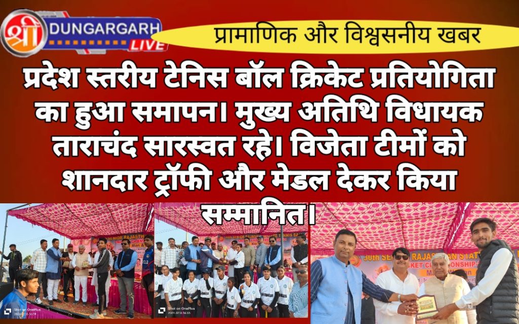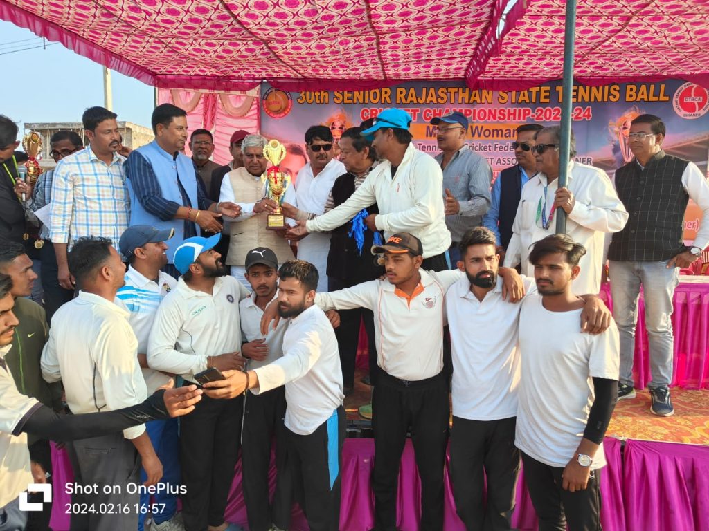 महिला वर्ग में बारा ,हुनामानगढ ,दौसा रहे।कार्यक्रम अतिथियों के द्वारा विजेता रहने वाली सभी टीमों का शानदार ट्रॉफी और मेडल देकर सम्मानित किया गया।जिला टेनिसबॉल क्रिकेट संघ बीकानेर की ओर से प्रतियोगिता में भाग लेने वाले सभी प्रदेश पदाधिकारियों का, जिला सचिवों एवं सहयोग करने वाले भामाशाहों का, एवम स्टार क्लब के सभी सदस्यों को प्रतीक चिन्ह देकर सम्मानित किया गया।