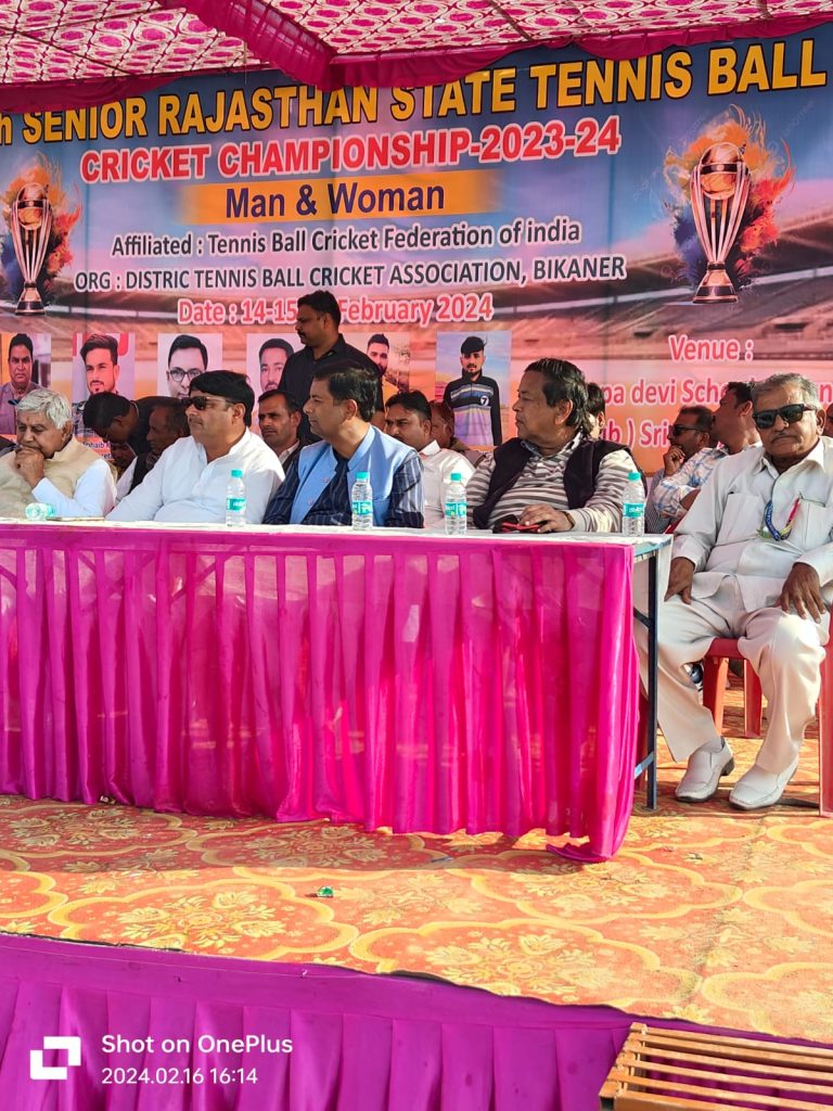 30 वीं सीनियर राज्य स्तरीय टेनिसबाल क्रिकेट प्रतियोगिता रूपादेवी स्कूल खेल मैदान पर निर्विवाद रूप से सफलतापूर्वक आयोजित की गई ।बीकानेर टेनिस बॉल संघ के अध्यक्ष विमल भाटी ने बताया कि प्रतियोगिता के समापन एवम पुरस्कार वितरण समारोह के मुख्य अतिथि विधायक श्री ताराचंद सारस्वत थे।विशिष्ट अतिथि के रूप में प्रधान प्रतिनिधि श्री केसराराम गोदारा, कृषि अधिकारी श्री कन्हैयालाल सारस्वत, श्री रामलाल जांघू, श्री महेश राजोतिया थे।कार्यक्रम की अध्यक्षता संघ के प्रदेश अध्यक्ष श्री मुंशी खान रहे।विधायक श्री ताराचंद सारस्वत ने अपने उद्बोधन में सभी खिलाड़ियों की हौसला अफजाई की ओर खेलो में अपना सर्वांगीण योगदान देने के बात कही। टेनिस बॉल क्रिकेट के लिए राज्य सरकार से नोकरी के संबध में अटके एक नियम को हटवाने के लिए बात करने का आश्वासन दिया।