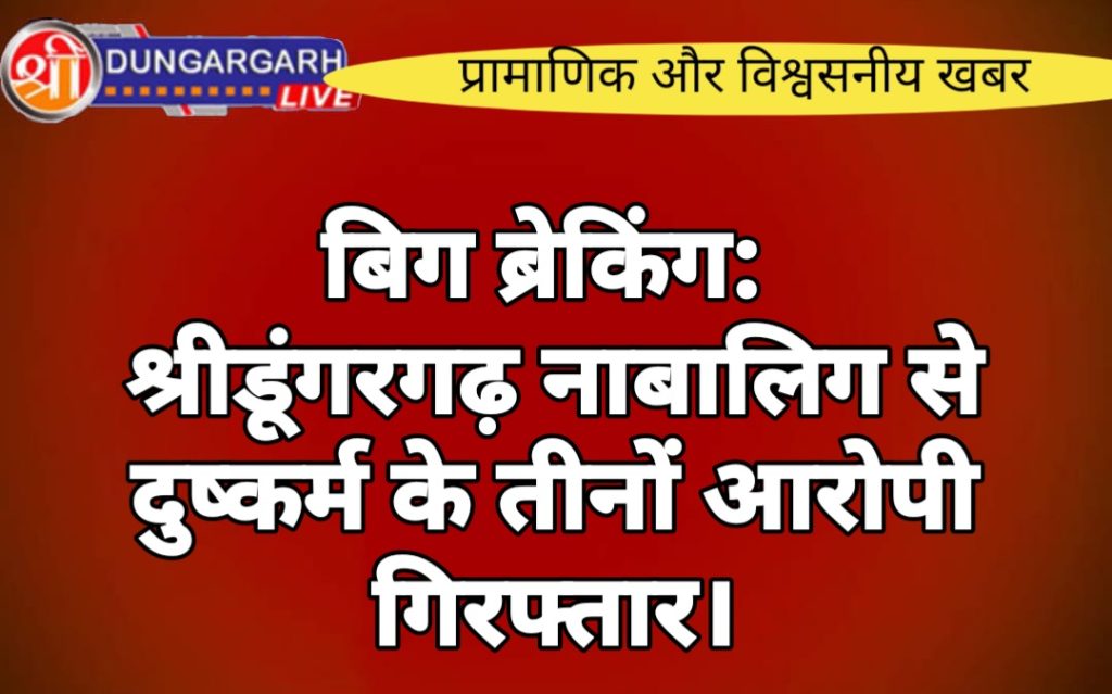 श्रीडूंगरगढ़ के एक गांव में स्कूल छात्रा के साथ गैंगरेप करने और उसका वीडियो बनाने के आरोपी तीन युवकों को पुलिस ने गिरफ्तार कर लिया है। इस संबंध में छात्रा के पिता ने श्रीडूंगरगढ़ थाने में मामला दर्ज कराया था।लड़की के पिता ने पुलिस को रिपोर्ट दी थी कि उसकी लड़की स्कूल की आधी छुट्टी होने पर घर खाना खाने आई थी। वापस लौटते समय देवीलाल गोस्वामी उसे लिफ्ट देने के बहाने के अपनी बाइक पर ले गया। एक स्थान पर उसने लड़की के साथ दुष्कर्म किया। इस दौरान दो युवकों अमर गिरी व घनश्याम गिरी ने उसका वीडियो भी बनाया। शिकायत मिलने के साथ ही पुलिस ने लड़की का मेडिकल मुआयना करवाया। उसके बयान लिए। तीनों युवकों को पुलिस ने तुरंत डिटेन कर लिया था लेकिन बयान के बाद उन्हें गिरफ्तार किया गया। पुलिस ने अमर गिरी, घनश्याम गिरी और देवीलाल गोस्वामी को गिरफ्तार किया है। तीनों से सख्ती के साथ पूछताछ की गई।तीनों युवकों की उम्र महज 18 से 24 साल के बीच है। देवीलाल गोस्वामी की उम्र महज 19 साल है जबकि अमर गिरी 24 साल का है। वहीं तीसरा आरोपी घनश्याम गिरी महज 18 साल का है। तीनों बालिग हैं। इस मामले में पुलिस आगे छानबीन कर रही है।