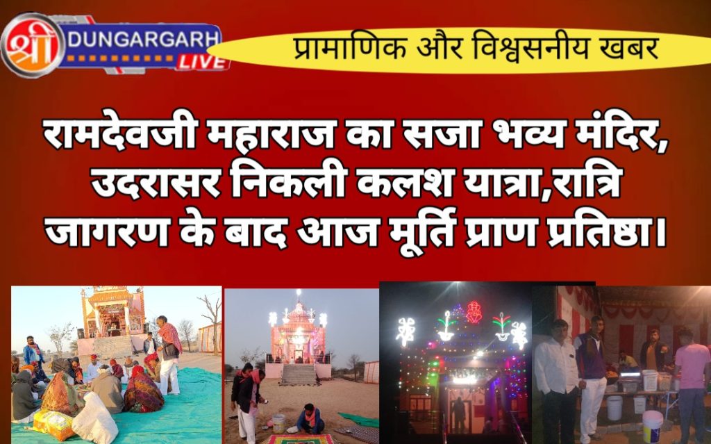 आस्थामय नारों से धरती अम्बर को गुंजायमान बना दिया। रात्रि जागरण के बाद आज सुबह मूर्ति प्राण प्रतिष्ठा होगी । पूरा मेला भरा हुआ है दुकानें सजी हुई । गांव में उत्सुकता का माहौल है सभी बच्चे और महिलाएं,युवा मेले का आनंद ले रहे हैं युवा रामदेव बाबा सेवा समिति की तरफ से भामाशाहो को किया सम्मानित।