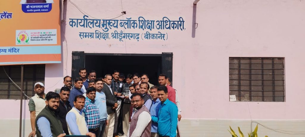 श्रीडूंगरगढ़।निजी विद्यालय संगठन स्कूल शिक्षा परिवार एवं स्कूल एजुकेशन वेलफेयर एसोसिएशन(सेवा) के संयुक्त नेतृत्व में मंगलवार को निजी स्कूलों में हर माह निरीक्षण करने के आदेश का विरोध जताते हुए उपखण्ड अधिकारी एवं मुख्य ब्लॉक शिक्षा अधिकारी को मुख्यमंत्री के नाम ज्ञापन सौपा।