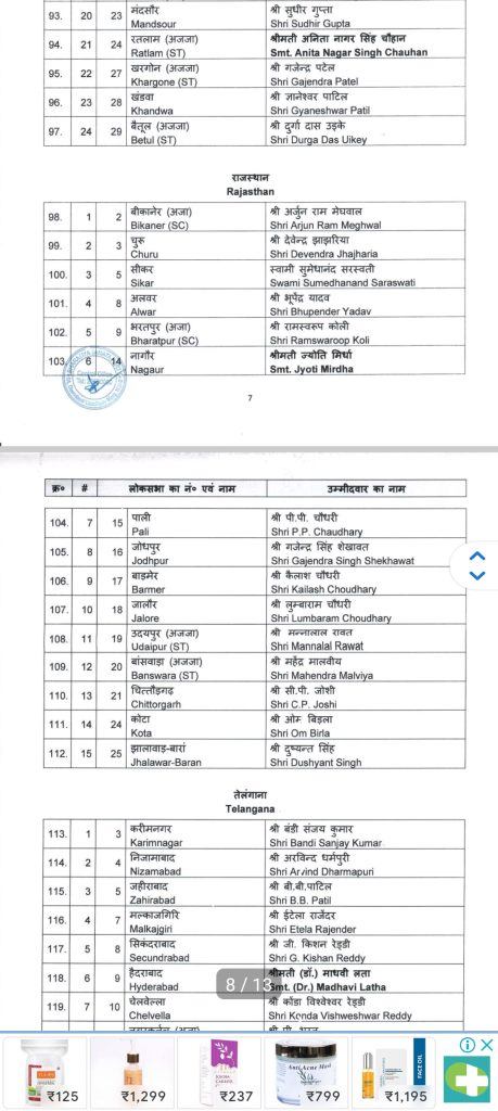 लोकसभा चुनाव राजस्थान से भाजपा के 15 उम्मीदवारों की घोषणा