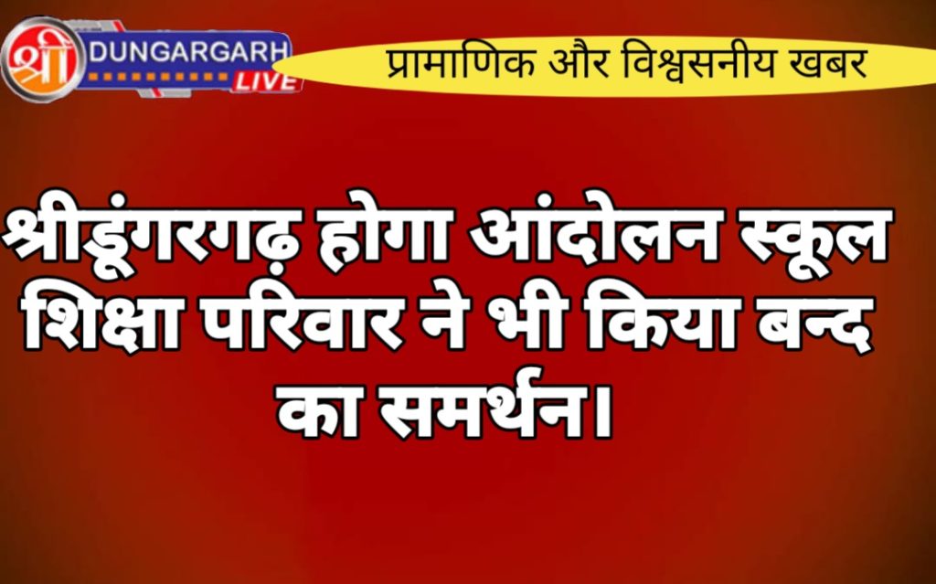 11 मार्च सोमवार को सेवा संगठन के बंद के आह्वान पर स्कूल शिक्षा परिवार से संबंधित सभी निजी स्कूलें भी बंद रहेगी।स्कूल शिक्षा परिवार के ब्लॉक अध्यक्ष मूलचन्द स्वामी ने बताया कि शिक्षा विभाग के बेतुके आदेश को लेकर निजी स्कूलों में बेहद आक्रोश है।जहां निजी स्कूलों के हितों की बात आयेगी वहां सभी संगठन एकजुट होकर कार्य करेंगे।सोमवार को शिक्षा निदेशक के घेराव में स्कूल शिक्षा परिवार का पूर्ण समर्थन रहेगा।
