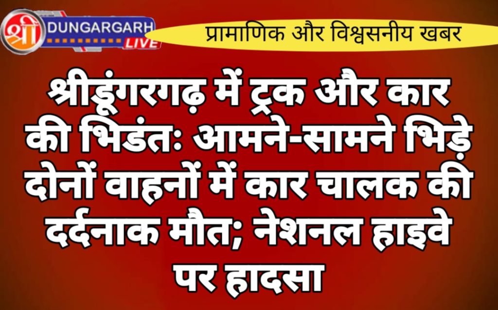 क्षेत्र में मंगलवार देर रात करीब दो बजे ट्रक और कार के बीच आमने-सामने हुई टक्कर में एक युवक की मौत हो गई। मृतक बीकानेर निवासी राजेंद्र सिंह है, जिसका शव अब श्रीडूंगरगढ़ के सरकारी अस्पताल में रखा गया है। हादसे में राजेंद्र सिंह के सिर और मुंह पर गंभीर चोट लगी थी।