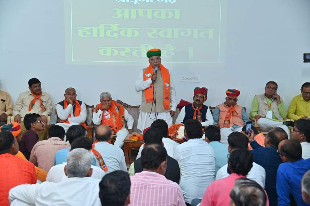 भाजपा विधायक ताराचन्द सारस्वत और विश्वकर्मा कौशल विकास बोर्ड के अध्यक्ष रामगोपाल सुथार ने केंद्रीय मंत्री का साफा व शाल ओढ़ाकर स्वागत किया। सभी भाजपा नेताओं ने कार्यकर्ताओं को संबोधित करते हुए लोकसभा चुनाव में भारत के यशस्वी प्रधानमंत्री नरेंद्र मोदी के नेतृत्व में भारत को विकास के पथ पर अग्रणीय बनाने का आह्वान करते हुए भाजपा को वोट देने का संकल्प दिया।