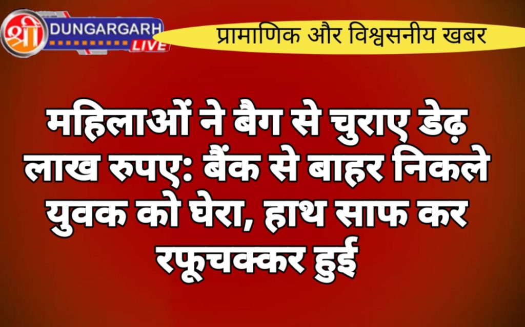 स्टेट बैंक ऑफ इंडिया की अंबेडकर सर्किल शाखा से रुपए लेकर बाहर जा रहे एक युवक के बैग से दो महिलाओं ने डेढ़ लाख रुपए निकाल लिए। घटना के चौबीस घंटे बाद कोई महिला पुलिस की पकड़ में नहीं आई है। कोटगेट पुलिस में मामला दर्ज कराया गया है, जिसकी जांच चल रही है।