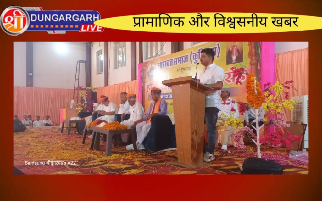रामगोपाल सुथार ने अपने उदबोधन में विधायक श्री ताराचंद सारस्वत शासन को सहज सरल स्वभाव का धनी बताते हुए जयपुर में क्षेत्र के विकास से जुड़ी मांगो को सम्मिलित रूप से उठाने की बात कही। श्री सुथार ने गुरु महिमा के दोहे से गुरु की आवश्यकता को प्रतिपादित किया। युवा नेता शिवप्रसाद तावनियां एवं सुनील तावनियां ने अपने संबोधन में बड़ी बेबाकी से समाज से जुड़े ज्वलंत मुद्दों को उठाते हुए समस्त आगंतुकों का ध्यान आकृष्ट किया। मंच संचालन की कमान वरिष्ठ शिक्षाविद् लीलाधर सारस्वत के हाथों में रही तथा सहयोगी की भूमिका श्री मुरली धर औझा ने निभाई। इस अवसर पर श्री लक्ष्मीनारायण तावनियां, श्री बृजलाल शर्मा बिग्गा, श्री बजरंगलाल सारस्वा देराजसर, श्री राजेश सारस्वा, श्री शिव कुमार सारस्वा, श्री कुनणाराम सारस्वा समंदसर, श्री शंकरलाल सारस्वा शेरुणा, श्री कानाराम सारस्वा जेतासर, श्री वेदप्रकाश सारस्वा, श्री नारायण मोट, श्री दीपक सारस्वा, श्री हरिराम तावनियां, श्री पवन सारस्वत उदरासर, श्री हेमंत सारस्वा, श्री जयचन्द कायल, श्री कैलाश सारस्वा हेमेरा, श्री रमेश तावनियाँ रीड़ी, श्री मनोज सारस्वत पूनरासर, श्री इन्द्रचंद औझा बीकानेर आदि ने कार्यक्रम के सफल आयोजन में सक्रिय भागीदारी निभाई। धन्यवाद ज्ञापित करते हुए युवा नवोत्थान समिति के अध्यक्ष श्री मनोज कायल ने ऐसे सामाजिक आयोजन बार-बार किए जाने की आवश्यकता पर बल दिया।