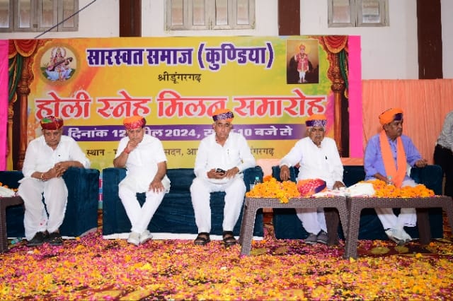 सारस्वत समाज कुंडिया का होली स्नेह मिलन समारोह माहेश्वरी भवन आडसर बास में आज अत्यन्त हर्ष एवं उल्लास के वातावरण में सम्पन्न हुआ। कार्यक्रम में मुख्य अतिथि के रूप में क्षेत्र के लोकप्रिय विधायक श्री ताराचंद सारस्वत एवं विशिष्ट अतिथि के रूप में राजस्थान सरकार के विश्वकर्मा कौशल विकास बोर्ड के अध्यक्ष रामगोपाल सुथार उपस्थित रहे। समाजसेवी सत्यनारायण भारद्वाज रिड़ी एवं नगरपालिका अध्यक्ष मानमल शर्मा भी मंचस्थ रहे। कार्यक्रम की अध्यक्षता समाज की स्थानीय समिति अध्यक्ष बजरंगलाल औझा के द्वारा की गई। पधारे हुए समस्त अतिथियों का मालार्पण, साफा पहनाकर एवं शॉल ओढ़ाकर सम्मान किया गया। सारस्वत नवोत्थान समिति ने बड़ी माला पहनाकर विधायक श्री ताराचन्द सारस्वत का स्वागत किया। सारस्वत समाज के प्रथम विधायक निर्वाचित होने पर संपूर्ण समाज द्वारा ताराचन्द सारस्वत को सम्मानित करते हुए अभिनन्दन पत्र भेंट किया गया।