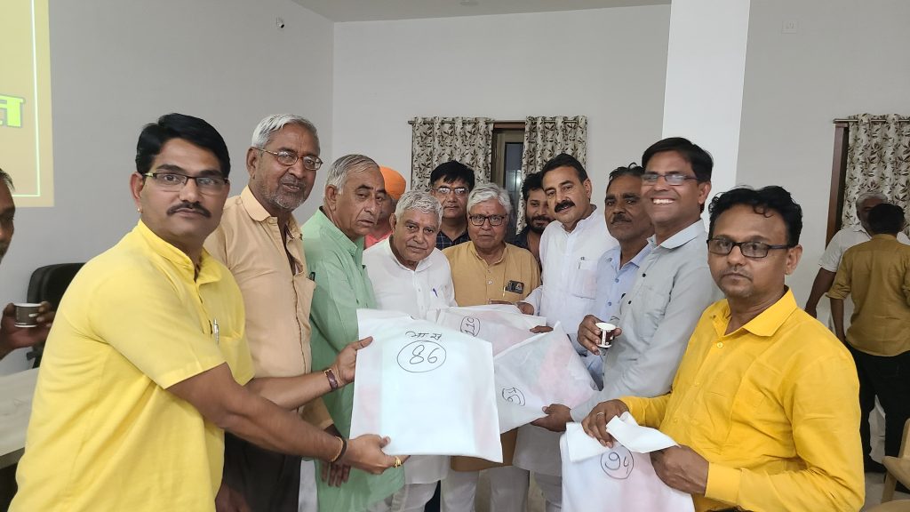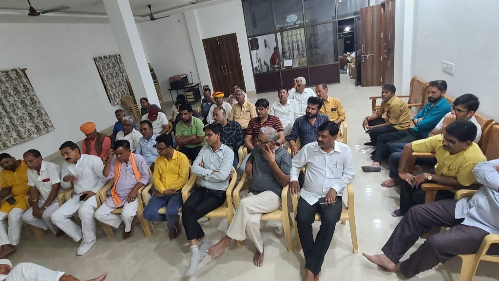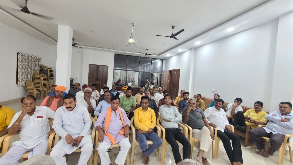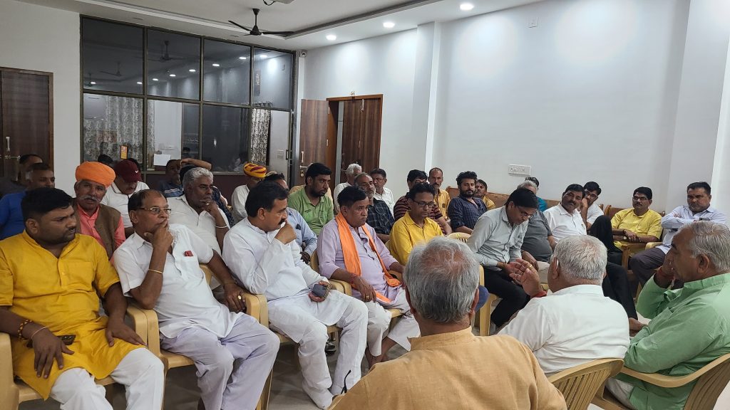 लोकसभा चुनाव को लेकर भारतीय जनता पार्टी शहर मंडल श्रीडूंगरगढ़ लोकसभा चुनाव बूथ समिति की बैठक भाजपा कार्यालय में शहर मंडल अध्यक्ष महावीर प्रजापत की अध्यक्षता में संपन्न हुई। बैठक में विधायक ताराचंद सारस्वत ने कार्यकर्ताओं को बूथ को मजबूत करने और मेरा बूथ सबसे मजबूत पर काम करने का मंत्र दिया। इस दौरान बूथ अध्यक्षों को चुनाव सामग्री वितरण की ओर आगामी चुनाव पर चर्चा की। बैठक में श्री डूंगरगढ़ विधायक श्री ताराचंद जी सारस्वत,श्री विश्वकर्मा कौशल विकास बोर्ड के अध्यक्ष श्री रामगोपाल जी सुथार,चेयरमैन मानमल शर्मा,शहर महामंत्री सुरेंद्र चूरा,महेश राजोतिया,ओबीसी मोर्चा देहात जिलाध्यक्ष विनोद गिरी गुसाई,हेमनाथ जाखड़, पार्षद जगदीश गुर्जर,भरत सुथार,लोकेश गौड़,मांगीलाल राठी,मूलचंद इंदौरिया, सांवरमल गुरावा,प्रेमचंद शर्मा,हेमराज भादानी,हेमराज बरडिया,ओमप्रकाश प्रजापत,कन्हैयालाल गुरवा,अर्जुनराम शर्मा,नवरत्न राजपुरोहित,शिव तावनियाँ,अशोक महावारओमप्रकाश सोनी, संजय शर्मा,सीताराम राजपुरोहित,राजेंद्र राजपुरोहित तोलियासर,गोरी शंकर तंवर,भवानी प्रकाश तवानियां सहित भाजपा कार्यकर्ता मौजूद रहे ।