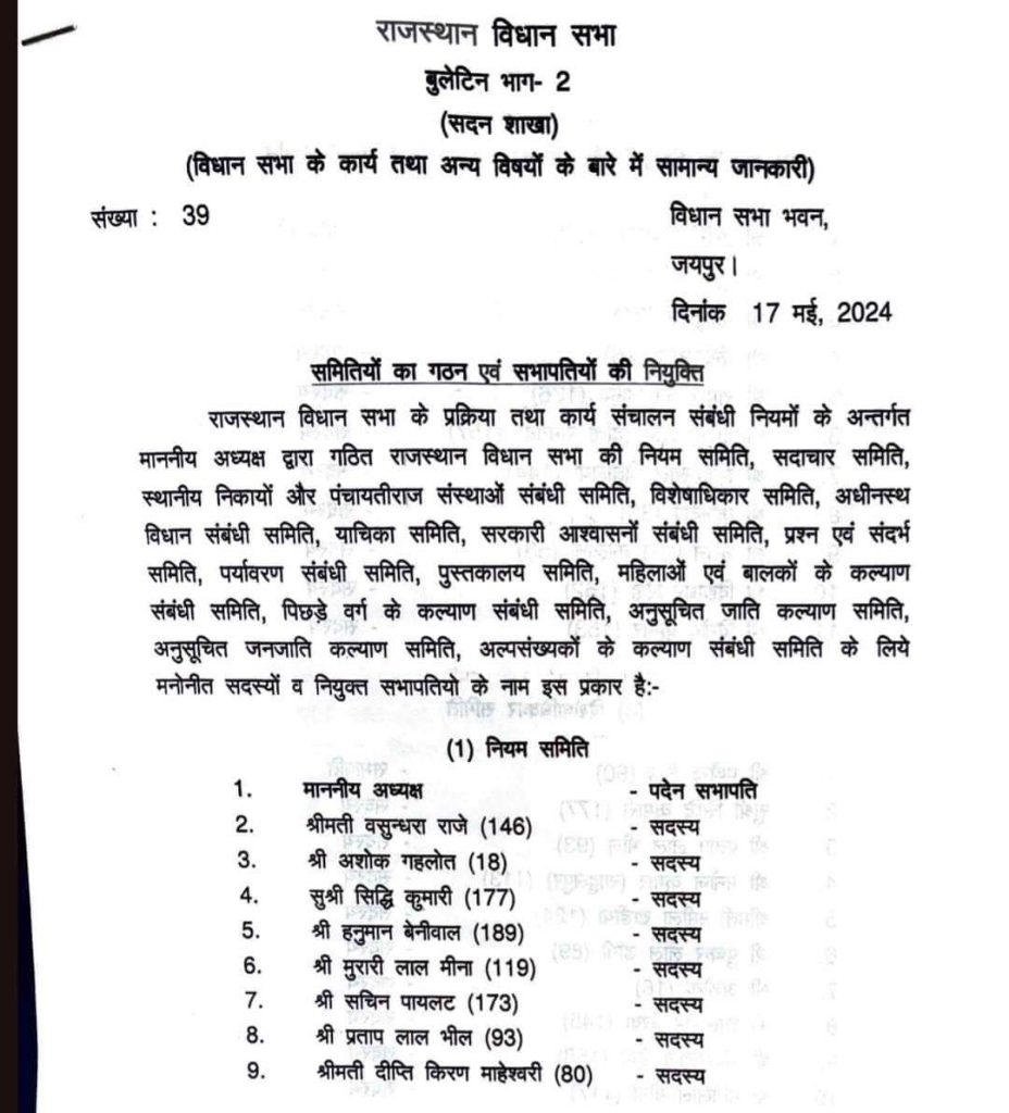 राजस्थान विधानसभा में समितियों का गठन विधासभा अध्यक्ष श्री वासुदेवानी द्वारा किया गया जिसमे श्रीडूंगरगढ़ विधानसभा विधायक श्री ताराचंद जी सारस्वत को याचिका समिति में सदस्य मनोनीत किए जाने पर वरिष्ठ भाजपा नेताओ एवं कार्यकर्ताओं ने खुशी जाहिर करते हुए विधायक श्री ताराचंद जी सारस्वत को शुभकामनाएं दी।