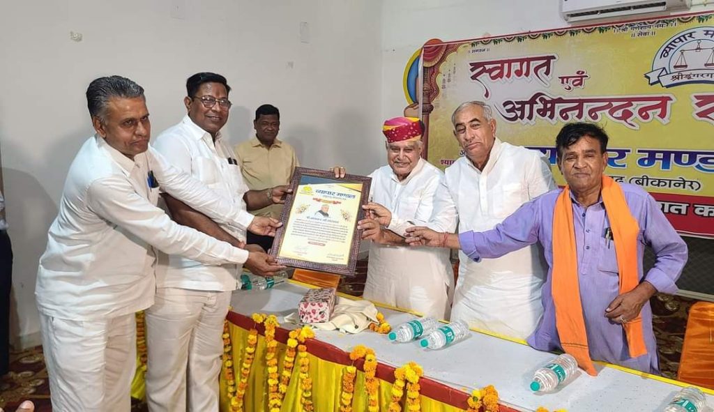 श्रीडूंगरगढ़ कस्बे में तेरापंथ भवन में व्यापार मंडल द्वारा सम्मान समारोह का आयोजन किया गया। समारोह में विधायक ताराचंद सारस्वत, विश्वकर्मा कौशल बोर्ड के अध्यक्ष रामगोपाल सुथार, पालिकाध्यक्ष मानमल शर्मा का गाजे-बाजे के साथ फूल मालाएं व साफा पहनाकर सम्मान किया गया। मंच पर अतिथियों के साथ मंडल अध्यक्ष श्यामसुंदर पारीक व महामंत्री संजय करनाणी मौजूद रहें। पारीक ने स्वागत उद्बोधन दिया और करनाणी ने सभी का आभार जताया। कार्यक्रम में मंडल द्वारा शहर की कुछ खास समस्याओं को उठाया गया व विधायक, मंत्री व पालिकाध्यक्ष ने समाधान पर विचार रखें। नेताओं ने केंद्र में भाजपा सरकार बनने का दावा करते हुए डबल इंजन सरकार से विकास कार्य करवाने का आश्वासन दिया। इस दौरान बड़ी संख्या में व्यापारी उपस्थित रहें और सम्मान समारोह को क्षेत्र के विकास के लिए सार्थक चर्चा का समारोह बताया।