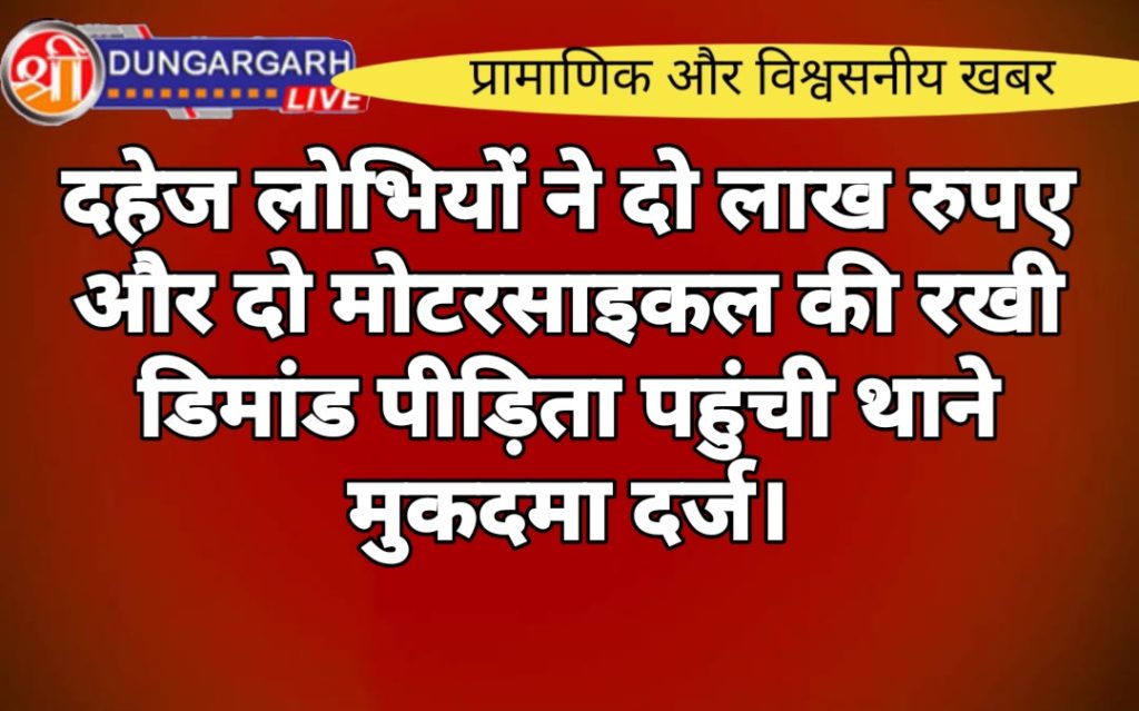 क्षेत्र में आए दिन दहेज लोभियों के खिलाफ मुकदमा दर्ज हो रहे है फिर भी आरोपी अपने हरकते से बाज नहीं आ रहे है।कम दहेज देने मारपीट करके घर से निकालने पर ससुराल पक्ष के खिलाफ मुकदमा दर्ज़ करवाया गया है। पीड़िता मांगी देवी ने थाने पहुंचकर अपने ससुराल पक्ष के खिलाफ मुकदमा दर्ज करवाया हैं। आरोप लगाया है की दोनो बहनों की शादी एक ही परिवार में हुई है उनको दहेज के लिए लगातार परेशान किया जा रहा है। ससुराल पक्ष द्वारा दो लाख नगद दो मोटरसाइकिल नहीं देने पर मारपीट करके घर से निकाल दिया है। पुलिस ने लूणकरणसर निवासी आरोपी लिछुराम राजेन्द्र छोगा राम सुभाष गुड्डी देवी के खिलाफ मुकदमा दर्ज कर लिया है और सब इंस्पेक्टर धर्मपाल इस मामले की जांच कर रहे हैं।