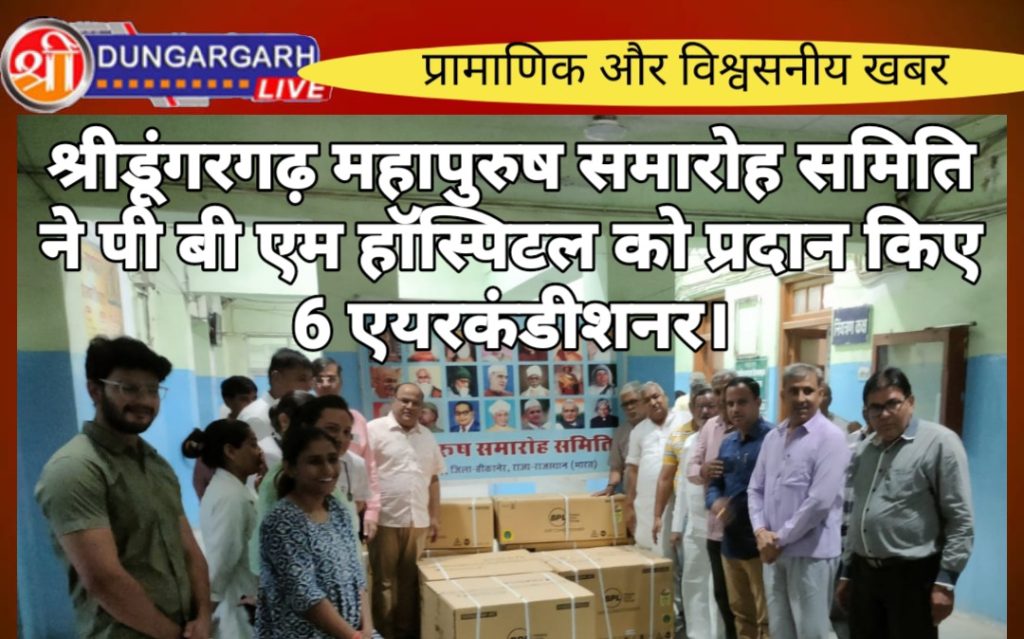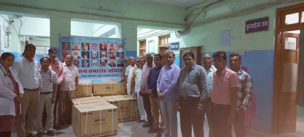 महापुरुष समारोह समिति, श्रीडूंगरगढ़ द्वारा पी बी एम हॉस्पिटल बीकानेर प्रशासन के विशेष आग्रह पर 6 एयर कंडीशनर मय स्टेबलाइजर शिशु एवं नर्सरी वार्ड में मरीजों की सुविधा हेतु प्रदान किए गए । डॉ गुंजन सोनी प्राचार्य सरदार पटेल मेडिकल कॉलेज बीकानेर के सानिध्य में पी बी एम हॉस्पिटल परिसर में इन उपकरणों का एक गरिमामय लोकार्पण समारोह पी बी एम के अधीक्षक डॉ पी के सैनी की अध्यक्षता में आयोजित किया गया। संस्था के अध्यक्ष एवं कस्बे के प्रमुख सामाजिक कार्यकर्ता श्रीगोपाल राठी ने अपने उदबोधन में कहा कि आर्तजनों की सेवा कोटि तीर्थ समान है । परोपकार से बढ़ कर कोई पुण्य कार्य नही है । इस क्षेत्र में लाखों लोगों के स्वास्थ्य के लिए आस्था का केन्द्र पी बी एम हॉस्पिटल बीकानेर में संस्था हमेशा सहयोग को आतुर है । मुख्य अतिथि डॉ सुरेन्द्र वर्मा अतिरिक्त प्राचार्य सरदार पटेल मेडिकल कॉलेज बीकानेर ने संबोधित करते हुए कहा कि समिति ने ये जो उपकरण अस्पताल को भेंट किए है वे जरूरतमंद रोगियों के स्वास्थ्य में समुचित सुधार और उपचार की दिशा में एक सकारात्मक और रचनात्मक प्रयास है। विशिष्ट अतिथि डॉ प्रमेन्द्र सिरोही सीनियर प्रोफेसर एवं पूर्व अधीक्षक पी बी एम ने समिति द्वारा समय समय पर सहयोग एवं दानदाताओं का इस अनुपम सहयोग के लिए आभार जताते हुए समिति के जन कल्याणकारी कार्यो की प्रशंसा की । महिला चिकित्सालय प्रभारी डॉ स्वाती फ्लोदिया ने समिति द्वारा उपलब्ध करवाए गए इन उपकरणों की उपयोगिता और महत्त्व के बारे में जानकारी देते हुए बताया कि ये उपकरण अस्पताल के लिए अति आवश्यक थे । डॉ स्वाति ने लेबर रूम के सुधार हेतु संस्था से सहयोग का आग्रह किया, जिसमें 70 डिलीवरी प्रतिदिन होती है । इसमें संस्था सदस्यों ने सकारात्मक सहयोग का आश्वासन दिया । संस्था के मंत्री सुशील सेरडिया ने बताया कि श्री मालचंद इन्द्रचन्द राठी श्रीडूंगरगढ़, श्री सूरजमल सत्यनारायण तोषनीवाल श्री डूंगरगढ़,श्री जुगल किशोर दीपक कुमार मूंधड़ा गुड़गांव, श्री इन्द्रचन्द मांगीलाल लूणिया श्रीडूंगरगढ़, श्री बाबूलाल राजकुमार बाफना श्रीडूंगरगढ़, श्री प्रेमसुख भोजराज प्रजापत ठेकेदार श्रीडूंगरगढ़ प्रत्येक ने एक एक एयर कंडीशनर मय स्टेबलाइजर में अपना आर्थिक सौजन्य उपलब्ध करवाया । इस अवसर पर संस्था के तुलछीराम चोरड़िया, डॉ मदन सैनी, डॉ नोरंग महावर, श्रीमती विकास चौधरी प्रभारी नर्सिंग स्टाफ, डॉ सारिका स्वामी, सत्यदीप भोजक, तिलोकचंद गहलोत, विजय महर्षि, कुम्भाराम घिंटाला, डॉ कृष्णा प्रजापत सहित शहर के गणमान्यजन उपस्थित रहे । कार्यक्रम का सफल संचालन विजयराज सेवग ने किया । कार्यक्रम में उपस्थित सभी का कोषाध्यक्ष निर्मल पुगलिया ने आभार प्रकट 