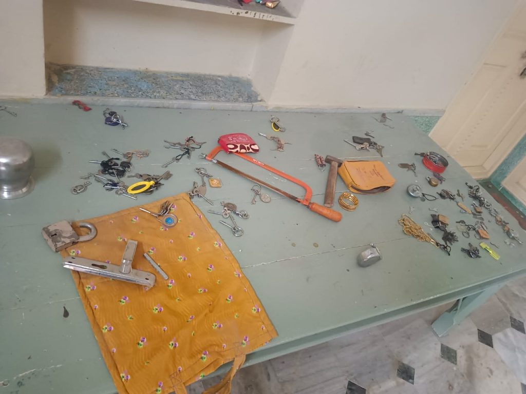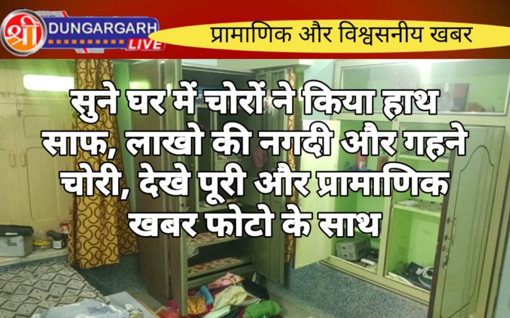 श्रीडूंगरगढ़ क्षेत्र में चोरी की घटना बढ़ रही है कालूबास के वार्ड 35 के स्व. आशाराम संदीप कुमार सोनी का घर पिछले 2 महीने से बन्द पड़ा था। मकान मालिक संदीप सोनी दिल्ली में व्यवसाय करते है और परिवार सहित वहीं रहते है। संदीप सोनी ने बताया कि जब आज मैंने अपने घर का मुख्य दरवाजा खोला तो देखा कि सामने के दोनों कमरे खुले पड़े थे और अलमारी के ताले टूटे हुए थे। सारा सामान बिखरा हुआ था। आलमारी के लॉकर तोड़े हुए थे और सोने के गहने व नगदी गायब थी। संदीप सोनी ने बताया कि मेरे घर मे पिछली दीपावली और उसके बाद भी चोरों ने दो बार सेंध लगाने की कोशिश की थी।कालूबास में पहले भी सीताराम छंगाणी के घर में चोरों ने लाखों के गहने और नगदी पर हाथ साफ कर दिया था। इसका वीडियो भी वायरल हुआ था लेकिन अभी तक चोरों का पता नही चल पाया है।