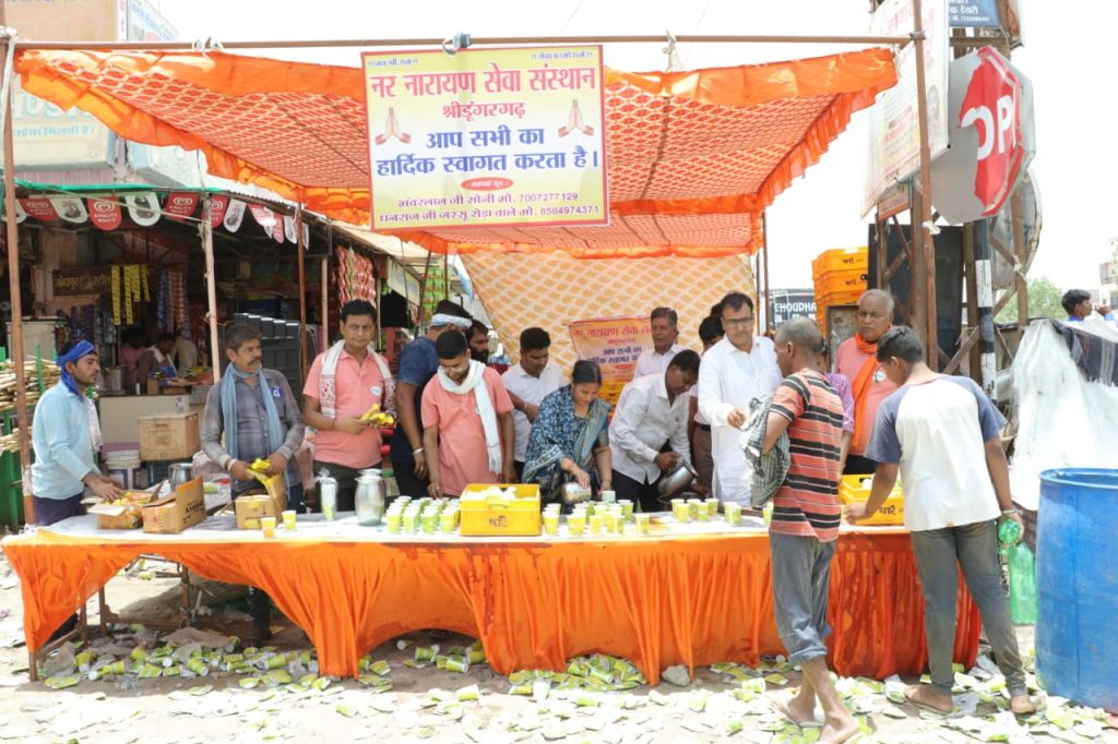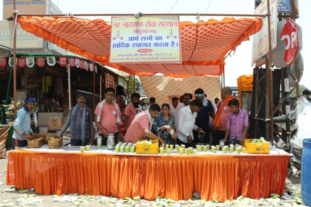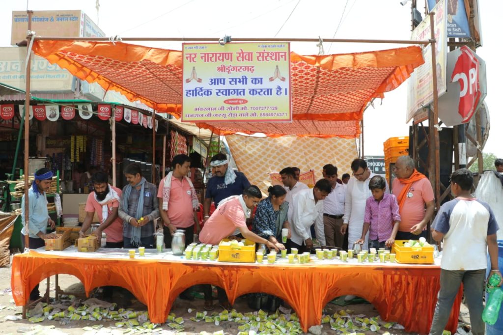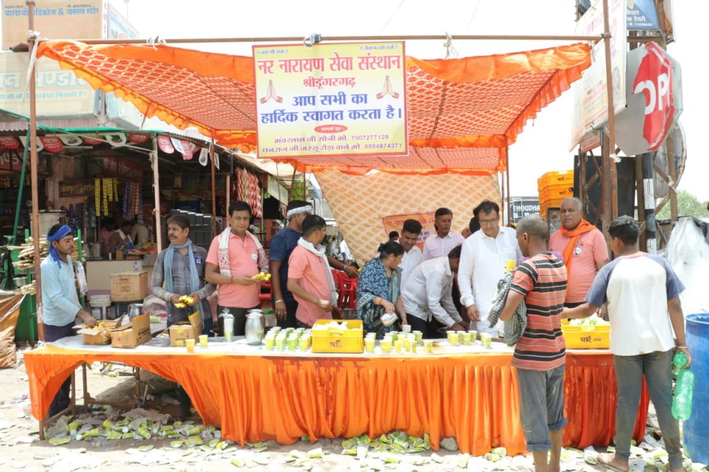निर्जला एकादशी के उपलक्षय पर नर नारायण सेवा संस्थान श्रीडूंगरगढ़ ने की आम राहगीरों को लस्सी, छाछ, लीची शरबत, रसना शरबत, केरिपाना शरबत, और रोज शरबत का वितरण किया। नर नारायण सेवा संस्थान के जय बाहेती ने बताया कि संस्था के संस्थापक धनराज जी जस्सू ने पिछले वर्ष के भाँती इस वर्ष भी धार्मिक पुण्य कार्य के अंतर्गत निर्जला एकादशी के उपलक्षय पर श्रीडूंगरगढ़ के घूमचकर पर विशाल सेवा शिविर का आयोजन किया। जिसमे में संस्था के सदस्यों ने बढ़ चढ़ के सहयोग किया। संस्थान के सहयोग कर्ताओ के सहयोग से इस विशाल सेवा शिवर में लस्सी, छाछ, लीची शरबत, केरीपन्ना शरबत, रसना शरबत, रोज शरबत का वितरण आम जन मानस के लिए किया गया इस विशाल सेवा पुण्य शिवीर मे उपस्थित रहे संस्थान अध्यक्ष सुषमा श्याम करनानी, श्याम करनानी, आनंद जोशी, भवरलाल सोनी, विनोद तोलम्बीया , पवन स्वामी , कैलाश सारस्वत , नारायण प्रजापत , गोसेवार्थ सुंदरकांड मंडली के सदस्य, मोमासर मित्र मंडली के सदस्य और रतनगढ़ से वकील लछमन प्रजापत , वकील श्रीभगवान सारस्वत नर नारायण सेवा संस्थान टीम और अन्य गणमान्य नागरिक उपस्थित रहे।