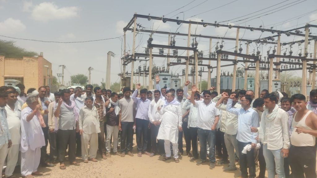 जिसमें पूर्व कैबिनेट मंत्री गोविंद राम मेघवाल कांग्रेस नेता केसराराम गोदारा सहित बड़ी संख्या में जनप्रतिनिधि इस धरने में पहुंचे है। पुर्व में यहां खोले गए सहायक अभियंता कार्यालय को भी विभाग द्वारा बंद कर दिया गया जिससे ग्रामीणों को परेशानी का सामना करना पड़ता है। पूर्व मंत्री गोविंद मेघवाल ने सरकार को चेतावनी दी और कहा की सरकार समय रहते किसानो की समस्या को हल करें वरना बड़ा आंदोलन किया जाएगा