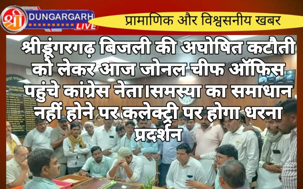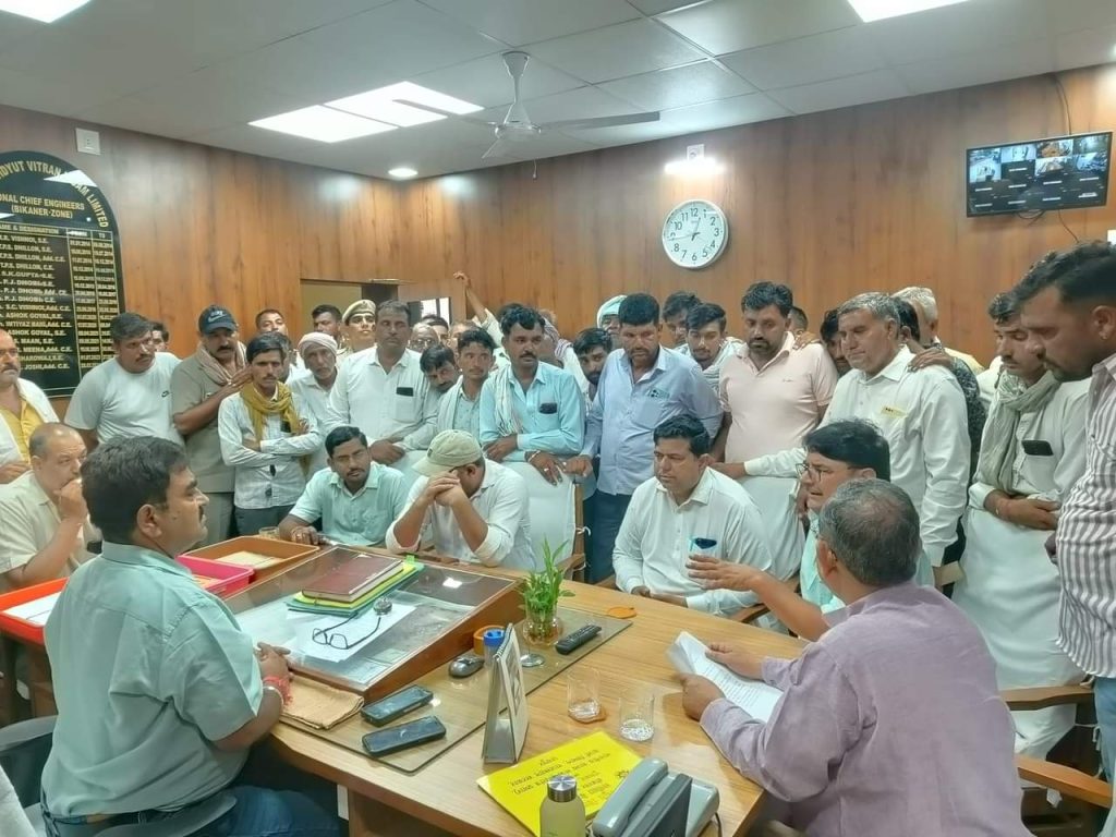 आज जोनल चीफ बिजली ऑफिस में पूर्व मंत्री राजस्थान गोविंदराम मेघवाल, प्रधान पंचायत समिति श्रीडूंगरगढ़ केसराराम गोदारा,प्रेम भादू पंचायत समिति डायरेक्टर सेरूणा के नेतृत्व में सैकड़ो किसान जोनल चीफ एन के जोशी से मिलकर बिजली मांग की है । पूरे जिले भर में अघोषित कटौती के कारण किसानों की मूंगफली की फसले चौपट हो रही है। वोल्टेज की कमी के कारण किसानों की मोटर जल रही है जिससे उनको भारी आर्थिक नुकसान हो रहा है मूंगफली की फसल नष्ट हो रही है मोटर जल रही है और फीडर छोटे नहीं होने के कारण वोल्टेज की बहुत बड़ी समस्या है सेरूणा में एक दूसरा 33 केवी जीएसएस लगाने की जरूरत है सेरूणा गांव में एक डीपी और लगाने की जरूरत है इसके अलावा जो वोल्टेज की कम ज्यादा की प्रॉब्लम है वोल्टेज कम आने से किसान की मोटर जल रही है जिससे किसानों भारी नुकसान हो रहा है और इस गर्मी के अंदर मूंगफली की फसल नष्ट हो रही है इस पर जोनल एन के जोशी को उक्त नेताओं के नेतृत्व में एक लिखित ज्ञापन दिया गया। बिंदुवार उनसे चर्चा की गई जिसके अंदर इस मीटिंग में एक्शन श्रीडूंगरगढ़ मौजूद थे आर डी एसएस के विजय सिंह मीणा एक्शन भी मौजूद थे जोनल चीफ ने मौके पर ठेकेदार को भी बुला रखा था गंभीरता से चर्चा हुई सबसे पहले 220 सेरूणा में स्वीकृत जीएसएस की जमीन आवंटन होने पर तुरंत प्रभाव से इसका निर्माण कार्य शुरू कर दिया जाएगा दूसरा उन्होंने कहा फिल्टर छोटे किए जाएंगे जिस कारण किसानों को पर्याप्त बिजली मिल सके उन्होंने यह भी बताया की आचार संहिता के कारण ट्रांसफार्मर के टेंडर नहीं हो पाए जिससे किसानों को ट्रांसफर की सप्लाई रिप्लेस जो करने थे वह समय पर नहीं करने से किसानों को समय पर डीपी नहीं देने के कारण उनका नुकसान हुआ है हम लगातार उच्च अधिकारियों के संपर्क में है अब डीपी की प्रॉब्लम नहीं आने दी जाएगी जल्द टेंडर हो जाएगा और समय पर आपके डीपी दी जाएगी 33 केवी जीएसएस 2 पर एक दूसरा ट्रांसफर जल्दी स्वीकृत करके वहां अतिरिक्त ट्रांसफार्मर लगाएंगे उसे वोल्टेज की समस्या दूर हो जाएगी सेरूणा में एक और जीएसएस स्वीकृत करने पर जोनल चीफ ने बताया की उनका भी एस्टीमेट बनवाकर उसको भी मैं स्वीकृति के लिए भेज दूंगा गांव के अंदर आबादी में दो ट्रांसफार्मर नई स्थापित करेंगे जिससे घरेलू बिजली की समस्या दूर हो जाएगी इसके लिए आज ही ठेकेदार को मौके पर भेज दिया है वह जल्द जो है लोकेशन देखकर के और ट्रांसफार्मर स्वीकृत कराकर यह जल्द काम पूर्ण किया जाएगा इसके अलावा लिखमीसर उतरादा के 33 केवीए जीएसएस के लिए नई लाइन व 315 के ट्रांसफार्मर की जगह 5 एमवीए के ट्रांसफार्मर की स्वीकृति जल्द से जल्द दी जाए इसके अलावा जिले भर में वोल्टेजकी समस्या दूर करने पर विस्तार से चर्चा हुई जिस पर जोनल ची