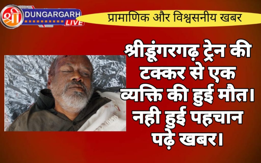 श्रीडूंगरगढ़ आज सुबह सराय रोहिल्ला से बीकानेर एक्सप्रेस से एक व्यक्ति की कटकर मौत हो गई है ये घटना परसनेउ से बिग्गा के बीच में हुई। आपनो गांव सेवा समिति के सेवादारों ने मौके पहुंचकर शव को जिला अस्पताल की मोर्चरी में पहुंचाया। समिति के सदस्यों ने निवेदन किया है की कोई मृतक को पहचानता है तो श्रीडूंगरगढ़ पुलिस स्टेशन 01565 222121 पर सूचना देवे।