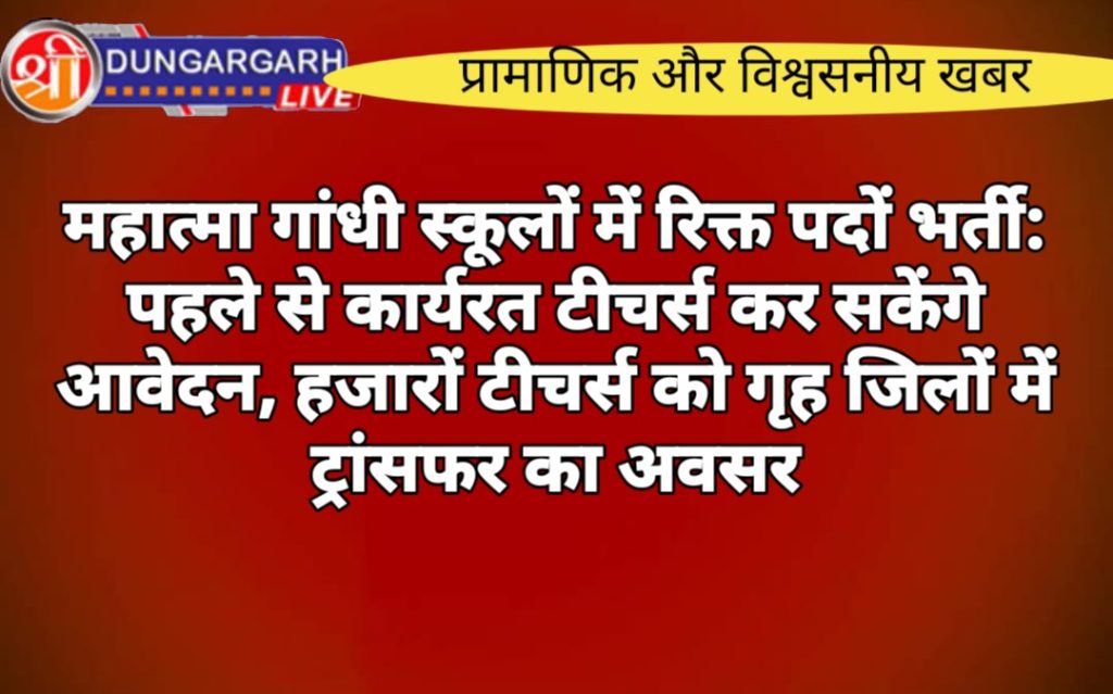 जो टीचर महात्मा गांधी अंग्रेजी माध्यम स्कूल में पढ़ाने की योग्यता रखते हैं, उन्हें अपने गृह जिले में जाने का अवसर मिल गया है। ऐसे टीचर्स अपने गृह जिले को प्रथम वरीयता और अन्य निकटवर्ती जिलों को दूसरी से पांचवीं तक की वरीयता देते हुए आवेदन कर सकते हैं। पिछली बार जब सरकार ने महात्मा गांधी स्कूल के पद इसी तर्ज पर भरे तो बड़ी संख्या में टीचर्स अपने गृह जिलों में पहुंच गए थे।