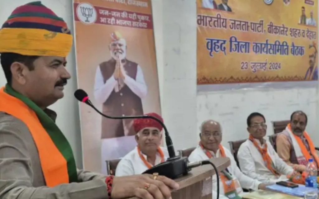 भारतीय जनता पार्टी शहर और देहात की जिला कार्यसमिति बैठक मंगलवार को भाजपा संभाग कार्यालय में शहर जिलाध्यक्ष विजय आचार्य व देहात जिलाध्यक्ष जालम सिंह भाटी की अध्यक्षता में संपन्न हुई। प्रदेश महामंत्री व बीकानेर संभाग सह प्रभारी श्रवण सिंह बगड़ी ने इस मौके पर कहा कि पार्टी में कार्यकर्ता संगठन की ताकत है। भाजपा ही वह पार्टी है जो कार्यकर्ता के श्रम का मूल्यांकन करती है। इसी का उदाहरण है कि जमीन से जुड़े एक निष्ठावान कार्यकर्ता भजनलाल शर्मा आज राज्य के मुख्यमंत्री के रूप में हम सभी के सामने हैं।