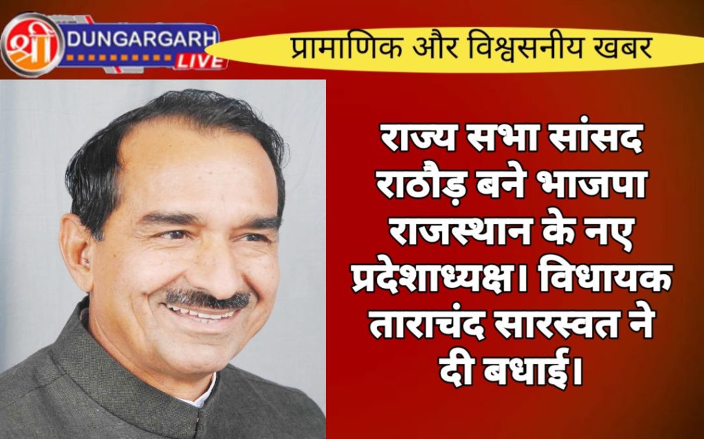 श्रीडूंगरगढ़ विधायक ताराचंद सारस्वत ने नए बने भाजपा के प्रदेशाध्यक्ष मदन राठौड़ को बधाई और शुभकामनाएं दी।
