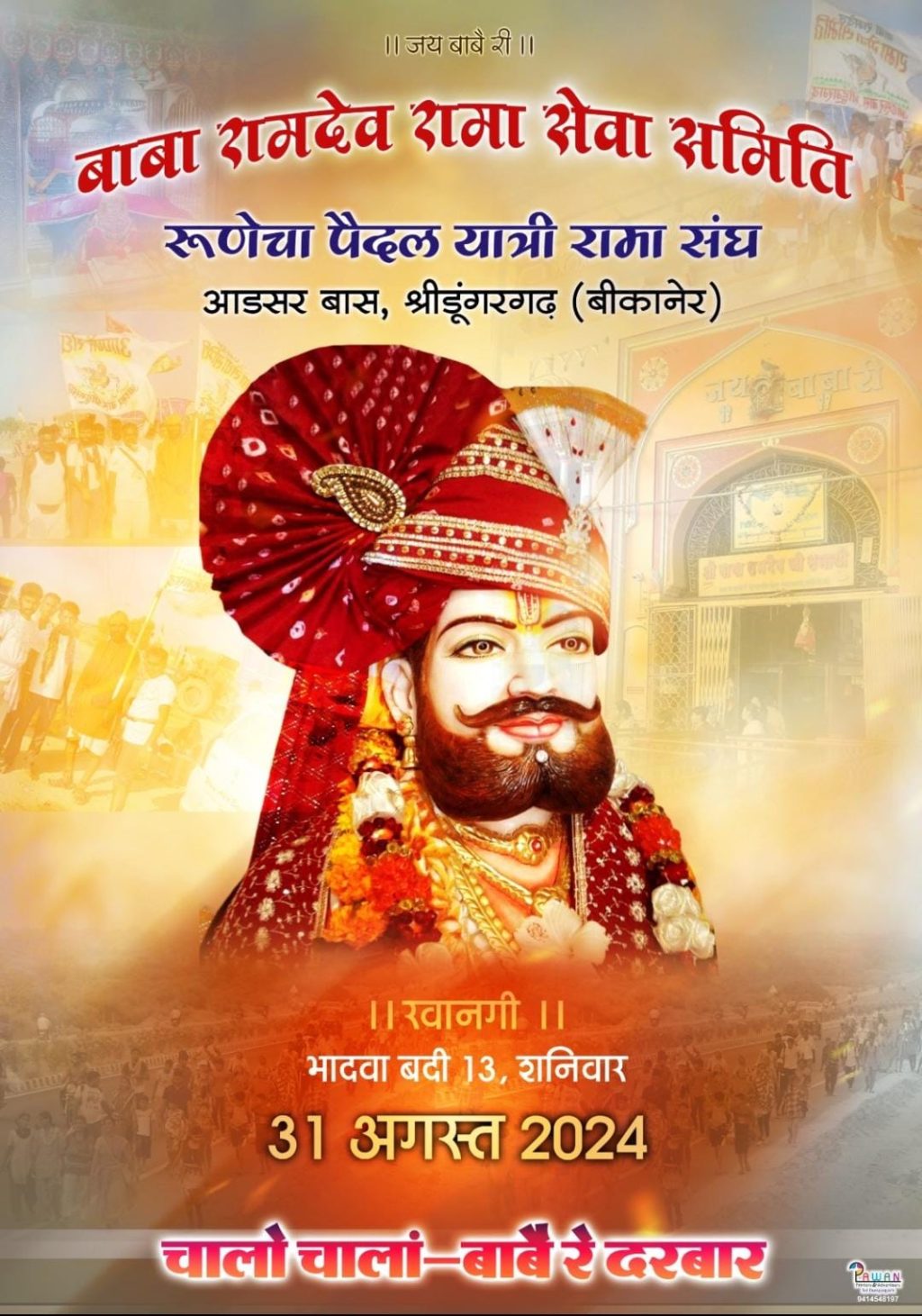 बाबा रामदेव रामा सेवा समिति रुणिचा पैदल यात्री रामा संघ आडसर बास श्रीडूंगरगढ़ का पैदल यात्री संघ 31 अगस्त 2024 को बाबा रामदेव जी मंदिर आडसर बास वार्ड नंबर 30 से रामदेवरा के लिए रवाना होगा पैदल यात्रा की तैयारी संबंधित बैठक संघ के अध्यक्ष गोविंद प्रसाद प्रजापत की अध्यक्षता में संपन्न हुई जिसमें बुधे सिंह राजपूत, मांगीलाल पारीक, , गंगा सिंह राजपूत, सत्यनारायण प्रजापत, मनसुख, बलबीर सिंह राजपुरोहित, सांवरमल सारस्वत ,तनसुख, मोहन लाल, लोकश नाथ, चिरंजीलाल प्रजापत, ललित सिंह, कालू, नंदकिशोर, अर्जुन सिंह, गणेश माली, व संघ के अन्य व्यवस्थापक और कार्यकर्ता उपस्थित रहे जिसमें सभी को विभिन्न जिम्मेदारियां सौंपी गई।