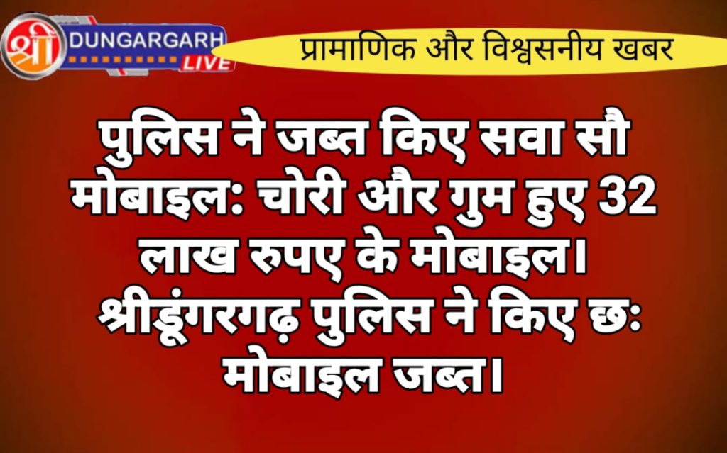साईबर सैल कार्यालय के 57, पुलिस थाना कोटगेट के 20, पुलिस थाना साईबर के 13, पुलिस थाना नयाशहर के 10, पुलिस थाना श्रीडूंगरगढ के छह, पुलिस थाना एमपीनगर के छह, पुलिस थाना बीछवाल के चार, पुलिस थाना लूणकरनसर के दो, कालू के दो, कोलायत के दो, बज्जू का एक, नाल का एक, गजनेर का एक और पांचू का एक मोबाइल पुलिस ने बरामद किया है।