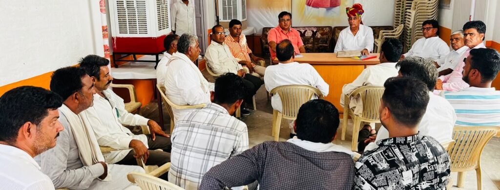 नोखा मुख्यमंत्री भजनलाल शर्मा के सिलवा आगमन की तैयारी हेतु आज भाजपा कार्यालय जंभेश्वर चौक नोखा में भाजपा संगठन की बैठक विश्वकर्मा विकास बोर्ड के अध्यक्ष रामगोपाल सुथार की अध्यक्षता में आयोजित की गई ! जिसमें नोखा के पूर्व विधायक बिहारी लाल बिश्नोई उपस्थित रहे!पूर्व विधायक बिहारीलाल बिश्नोई ने बताया कि 28 जुलाई को मुख्यमंत्री भजनलाल शर्मा सिलवा आ रहे हैं इस दौरान कार्यक्रम में ज्यादा से ज्यादा संख्या में कार्यकर्ताओं को लेकर आना है इस हेतु साधनों की व्यवस्था की जाएगी ! बैठक मे कार्यकर्ताओं को अलग-अलग जिम्मेदारिया सौंपी गयी!रामगोपाल सुथार ने बताया कि मुख्यमंत्री भजनलाल शर्मा का एतिहासिक स्वागत करना है, सभी कार्य कर्ता इसमें जुट जाए!!इस दौरान बैठक मे जिला उपाध्यक्ष आसकरण भट्टड, मंडल अध्यक्ष महेंद्र संचेती, ओम प्रकाश सुथार, मांगूसिंह, जेठुसिह राजपुरोहित, शिव स्वामी, लालचन्द् भादू सहित पदाधिकारी उपस्थित रहे!!
