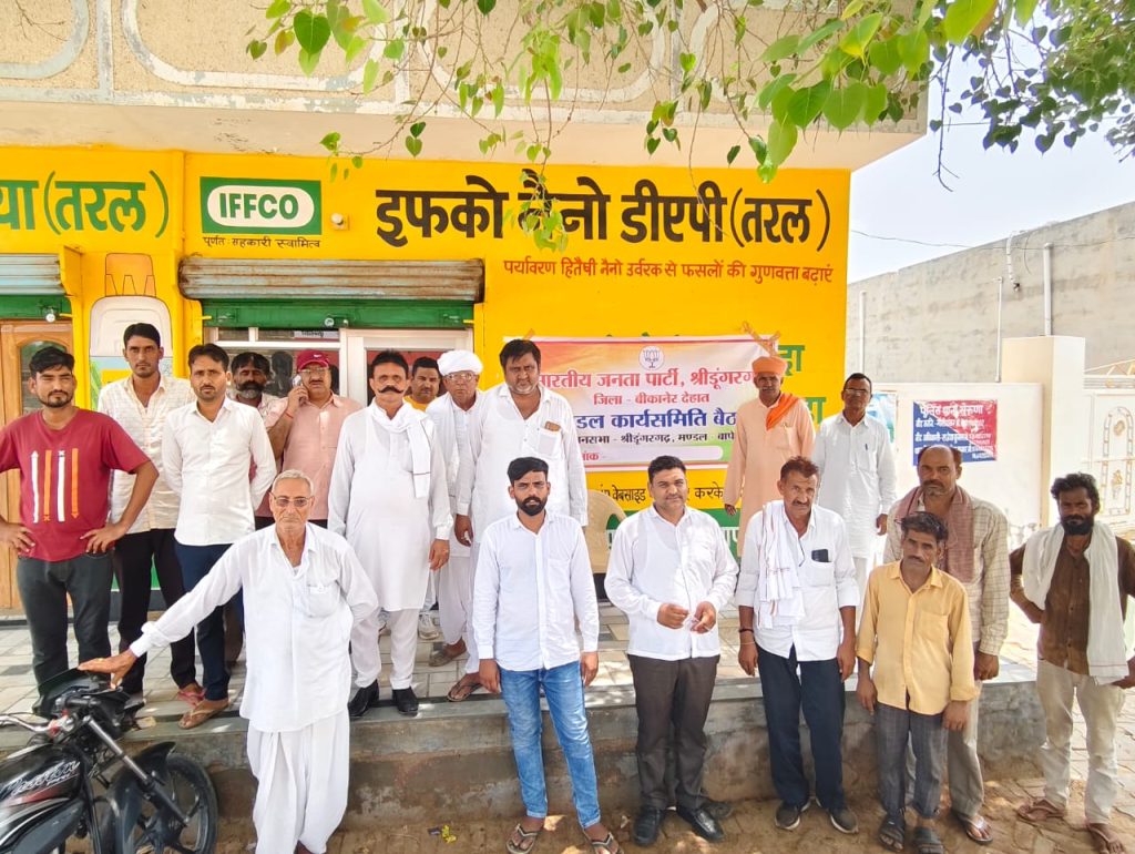 श्रीडूंगरगढ़ मंडल अध्यक्ष गिरधारीलाल गोदारा के नेतृत्व में सांवतसर में संपन्न हुई मण्डल कार्यसमिति की बैठक जिसमें पूर्व जिला परिषद सदस्य हेमनाथ जाखड़ ने लोकसभा एवं विधानसभा में पार्टी को मिली जीत का श्रेय कार्यकर्ताओं को देते हुए आगामी केंद्रीय एवं राज्य द्वारा विकासोन्मुखी योजनाओं को घर घर पहुंचाने का संदेश दिया ।
