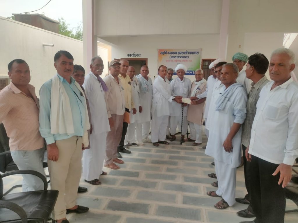 ने बालिका छात्रावास में कमरा निर्माण की घोषणा की । छात्रावास मैनेजमेंट कमेठी के अध्यक्ष एडवोकेट श्याम सुंदर आर्य एवं बैठक में उपस्थित सदस्यों ने दानदाता परिवारो का आभार प्रकट किया । बैठक में हड़मानाराम भाम्भू, पूर्व सरपंच मालाराम सिवल, तुलछीराम गोदारा, लक्ष्मणराम खिलेरी, चाँदराम चाहर, कानाराम तरड़, भंवरलाल खिलेरी, गणेश पोटलिया, रेवंतराम दुसाद, गोपीराम डेलू, तोलाराम सिहाग, रेवंतराम सारण, अमराराम खिलेरी, गोपालराम खिलेरी, रामचन्द्र गिला, सहीराम सायच, जैसाराम कुलड़िया, हनुमान महिया, ख्यालीराम साहू, भगवानाराम महिया, भंवरलाल जाखड़, रामकिशन गावड़िया, श्याम सारण सहित अनेक गणमान्यजन उपस्थित रहे । छात्रावास अधीक्षक श्रवण कुमार भामू ने सभी का आभार प्रकट किया