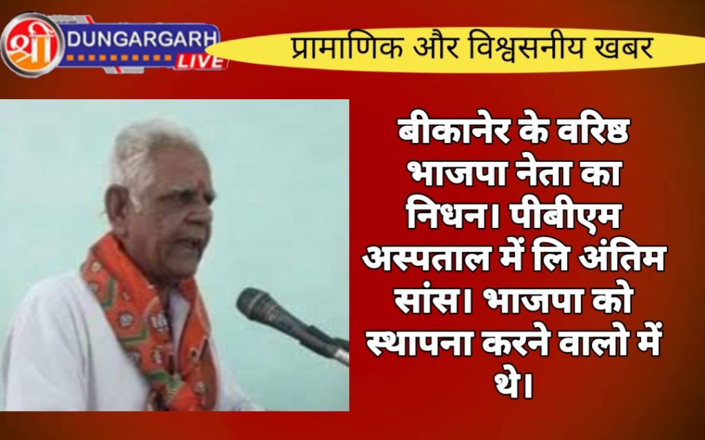 भारतीय जनता पार्टी को बीकानेर में स्थापित करने वाले नेता रिखबदास बोड़ा का मंगलवार को लंबी बीमारी के बाद पीबीएम अस्पताल में इलाज के दौरान निधन हो गया। बोड़ा का अस्पताल के सुपर स्पेशलिटी सेंटर पर इलाज चल रहा था। पहले भी कई बार बीमार हुए और ठीक हो गए, लेकिन इस बार उन्होंने अंतिम सांस ली।