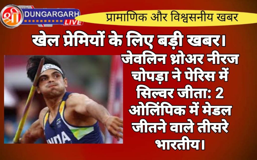 नीरज चोपड़ा ने पेरिस ओलिंपिक के जेवलिन थ्रो इवेंट में भारत को सिल्वर मेडल दिलाया। 26 साल के नीरज ने 89.45 मीटर दूर भाला फेंका और दूसरा स्थान हासिल किया। इसी के साथ नीरज लगातार दो ओलिंपिक में मेडल जीतने वाले भारत के तीसरे ही प्लेयर बने। नीरज से पहले रेसलर सुशील कुमार और शटलर पीवी सिंधु ने लगातार दो ओलिंपिक में मेडल जीते थे