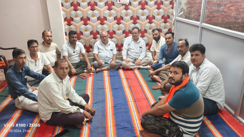 दिनाक 10/08/2024 को शाम 8 बजे विश्व हिंदू परिषद की बैठक रखी गई जिस में जिला अध्यक्ष जगदीश जी स्वामी ने बताया 26 अगस्त का विश्व हिंदू परिषद स्थापना दिवस मनाएगा उसी दिन श्री कृष्ण जन्माष्टमी भी ह। सरक्षक भवारलाल दुगड़ ने कार्यक्रम की रूप रेखा बनाई वही प्रखंड अध्यक्ष श्याम सुंदर जोशी ने बताया इस सांस्कृतिक कार्यक्रम में नृत्य प्रतियोगिता ,बाल कृष्ण राधा प्रतियोगिता,मटकी फोड़ प्रतियोगिता रखी जायेगी । नगर अध्यक्ष लाल सिंह जी ने बताया इस में सभी स्कूल के बच्चे भाग लेगे ये कार्यक्रम महेश्वरी भवन आडसर बास में रात्री 8 बजे शुरू होगा 12 बजे तक चलेगा माता ,बहिनों के बैठने की अलग व्यस्था होगी जितने भी भाई बहने प्रतियोगिता में भाग लेंगे सब को पुरस्कार दियाजाएगा।। नगर मंत्री मनीष नौलखा ने सभी पदाधिकारीयो को अलग अलग जिमेदारी सोपी।। मीटिंग में जिला संयोजक वासुदेव सारस्वत, प्रखण्ड उपाध्यक्ष अशोक नाई, धर्म जागरण प्रमुख अशोक वेद,प्रशासन प्रमुख फतेसिंह , गौ रक्षा प्रमुख भीकाराम सुथार,नगर सत्संग प्रमुख तिलोकचंद प्रजापत, प्रशासन प्रमुख सुनील पेडिवाल, गौ रक्षा प्रमुख मुकेश प्रजापत उपस्थित रहे