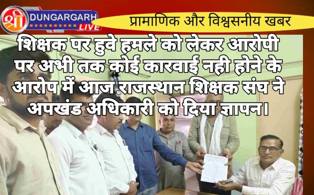 मोमासर के बालिका उच्च माध्यमिक विद्यालय के अध्यापक बीरबल राम मेघवाल पर जानलेवा हमला करने के आरोपी के खिलाफ पुलिस प्रशासन द्वारा आजतक कोई कार्रवाई नहीं किये जाने के विरोध में आज राजस्थान शिक्षक संघ शेखावत ने उपखण्ड अधिकारी श्रीमती उमा मित्तल के नाम तहसीलदार चौधरी राजवीर कड़वासरा को ज्ञापन देते हुए प्रशासन द्वारा अपराधियों को शह देने का आरोप लगाया। संघ ने आरोपी को गिरफ्तार करने और पीड़ित परिवार को इंसाफ दिलाने की बात कहता हुए उपखण्ड अधिकारी को बताया कि पीड़ित परिवार पर मुकदमा उठाने का दबाव बनाया जा रहा है और उन्हें धमकाया जा रहा है। राजस्थान शिक्षक संघ शेखावत ने कार्यवाही नहीं होने पर आदोलन करने की चेतावनी दी है। संघ के वरिष्ठ नेता सोहन गोदारा ने कहा कि पुलिस इस घटना को हल्के मे नहीं ले। आवश्यकता पड़ने पर तहसील के सभी शिक्षक कार्य का बहिष्कार करने से नहीं चूकेंगे। दुर दराज के अकेले शिक्षक की सुरक्षा का सवाल है। संघ के प्रदेश प्रतिनिधि बाला राम मेघवाल ने कहा कि अनुसुचित जाति के शिक्षक के साथ अत्याचार बर्दाश्त नहीं करेंगे। बुधवार को पुलिस अधीक्षक बीकानेर को प्रदर्शन कर ज्ञापन सौंपा जायेगा तथा जिला कार्यकारणी की बेठक बुलाकर पुरे बीकानेर जिले में आंदोलन करने का विचार करेंगे। पुर्व जिला अध्यक्ष आदुराम मेघवाल ने बताया कि एक सप्ताह हो गया अपराधी अभी तक खुला घुम रहा है। पीड़ित अध्यापक पर ही राजीनामा का दबाव बनाया जा रहा हैं। तहसील अध्यक्ष हरिराम सहू, मंत्री दाना राम डेलू, नोरंगराम जाखड़, कैलाश सिहाग, मनजीत सिंह आदि शामिल रहे।