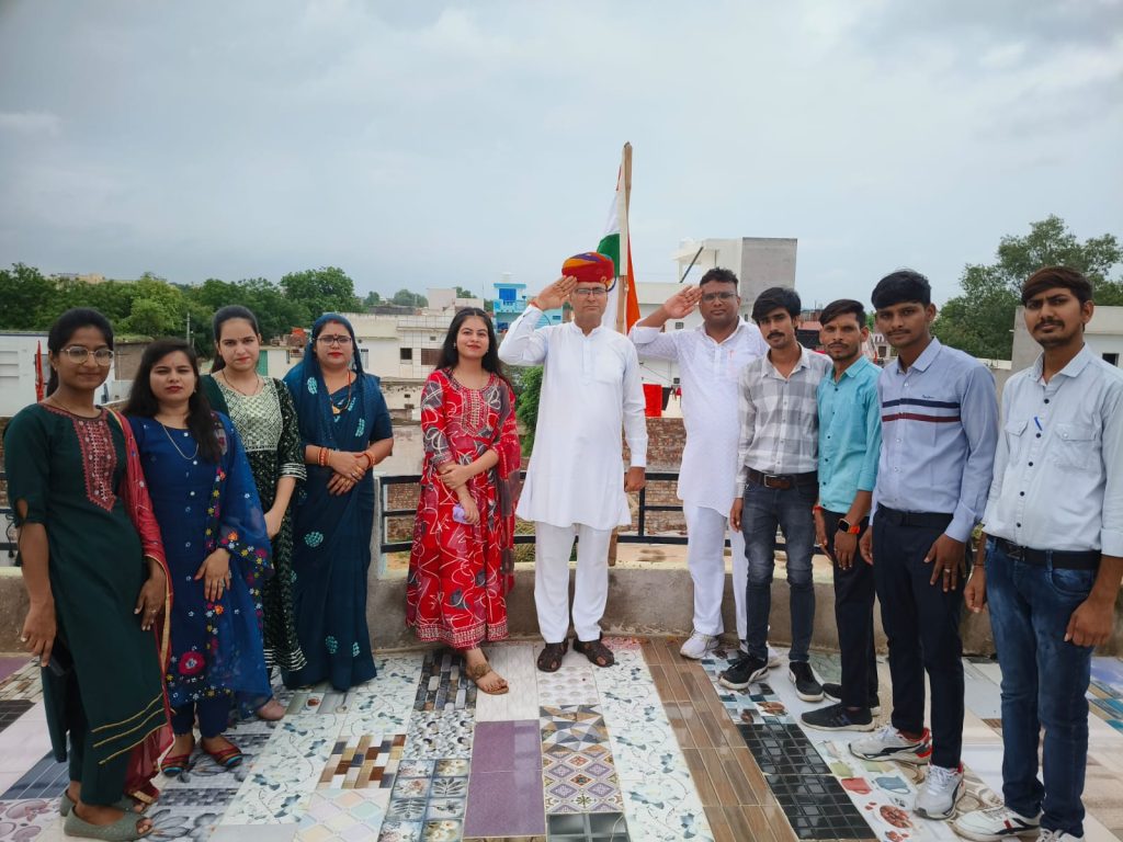78वें स्वतंत्रता दिवस के उपलक्षय पर नर नारायण सेवा संस्थान की तरफ से भी तिरंगा फेहराया गया संस्थान के सेवादार आनंद जोशी ने बताया की कुछ दिन पहले जिस स्थान पर पेड़ पौधे लगाए गए थे उक्त स्थान पर आज देश की आन बान शान तिरंगा फेराया लगाया गया और श्रीडूंगरगढ़ के अनेक नागरिको की उपस्थित रही और साथ में सभी मोमासर बास मित्र मंडली पूर्णाराम जी नाई चांदमल जी सिंधी श्री भगवान जी इंदर जी गुर्जर नंदकिशोर नाई संदीप कायल राजू स्वामी ओम प्रकाश सिद्ध देवीलाल जाट मोती कायल भरत नितिन जोशी भवानी आदि।